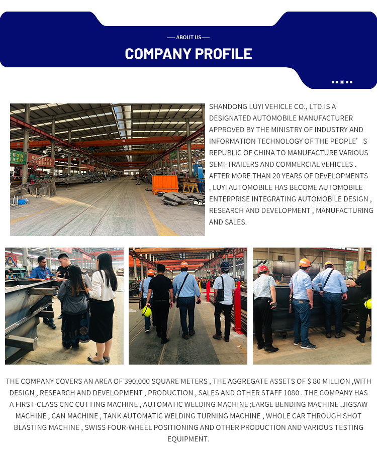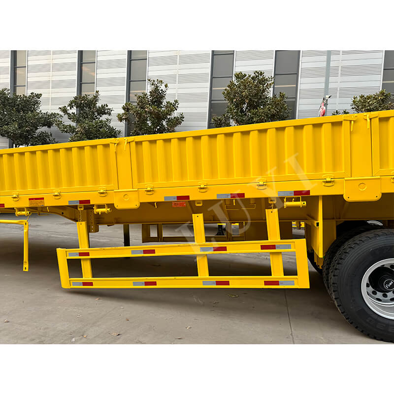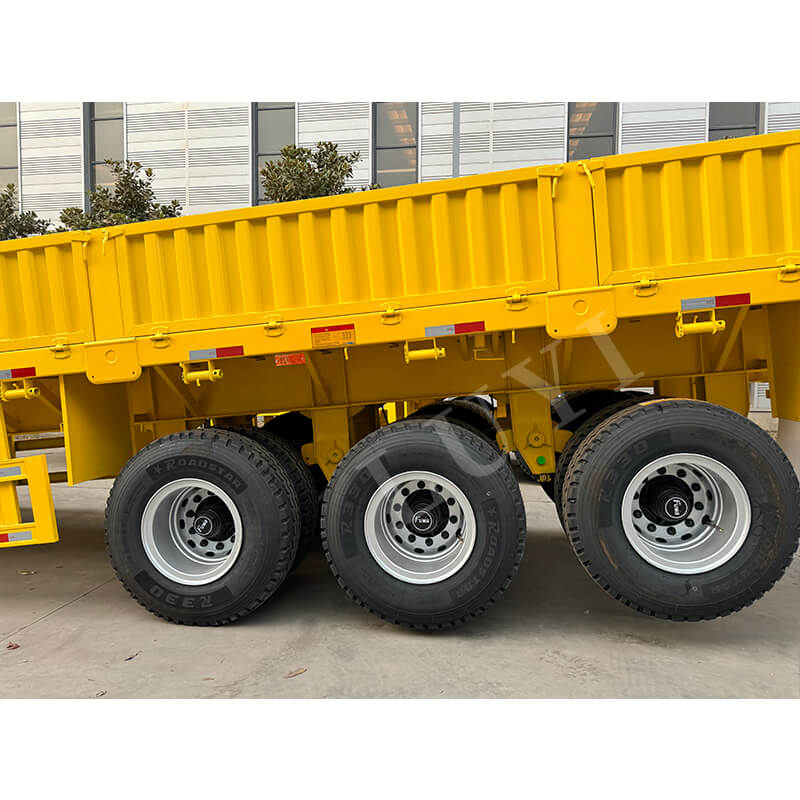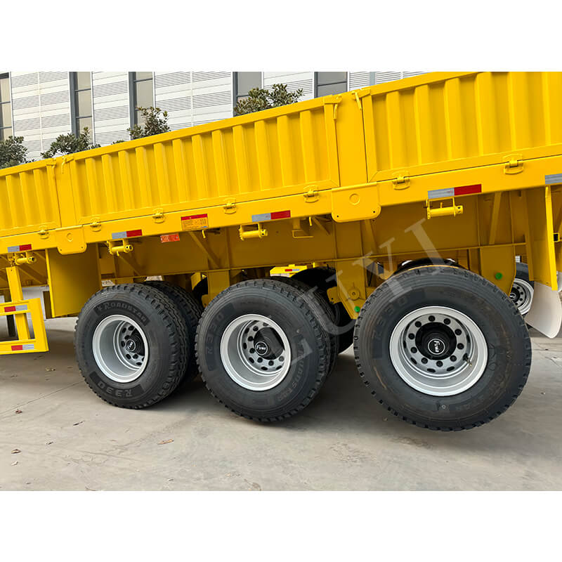 This trailer is flexibly compatible with 2/3/4-axle configurations, paired with a mechanical suspension and 12R225 tires for stable driving and strong shock resistance. It is equipped with a standard 28-ton landing gear for firm and reliable support, and the rims offer multiple options of 8.0/9.0×8/12/16 pieces to adapt to different working conditions. The kingpin adopts 2-inch (50mm) or 3.5-inch (90mm) JOST specifications, compatible with most tractors, and the dual-line braking system ensures driving safety. In addition, the size and color can be customized according to needs, fully meeting customers' personalized transportation requirements.