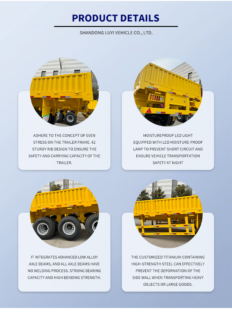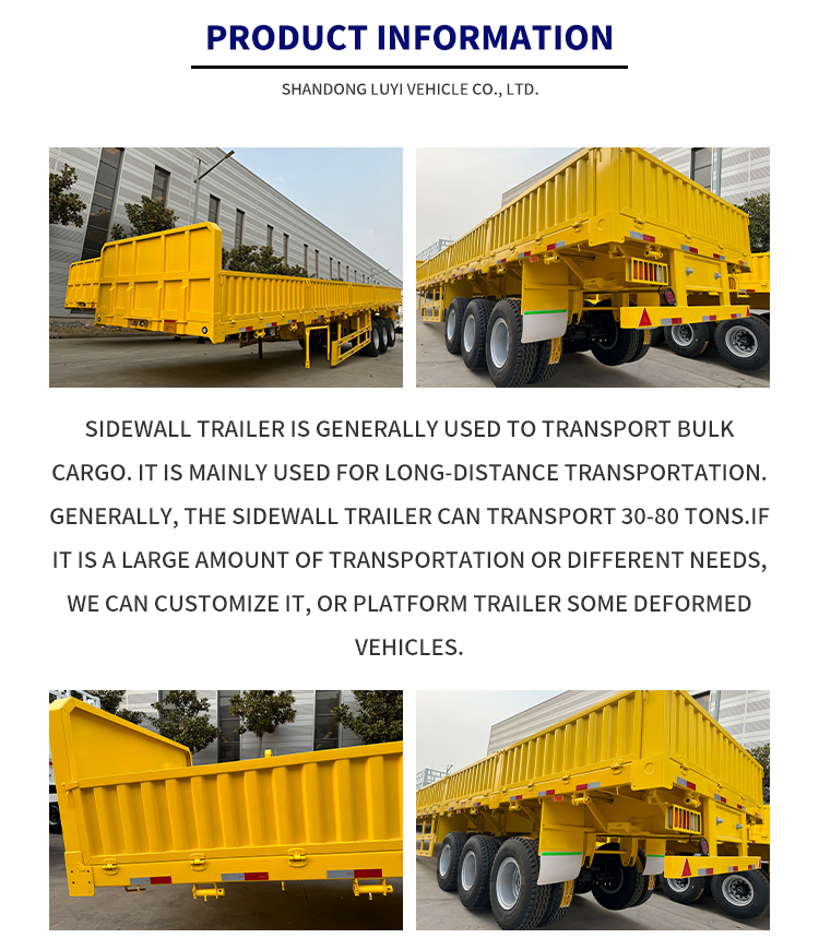 The LUYI 13m 3-Axle Semi-Trailer Steel-Aluminum Stake Trailer, originally from Shandong Province, China, is a brand-new side wall semi-trailer specially designed for truck cargo transportation. Made of high-quality steel, the trailer balances structural strength and durability, with a maximum effective payload of 20,001-25,000 kg, easily meeting the needs of medium and heavy-duty cargo transportation.