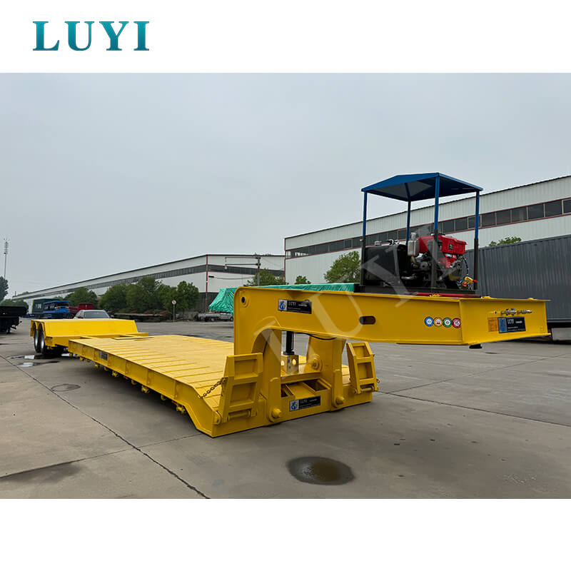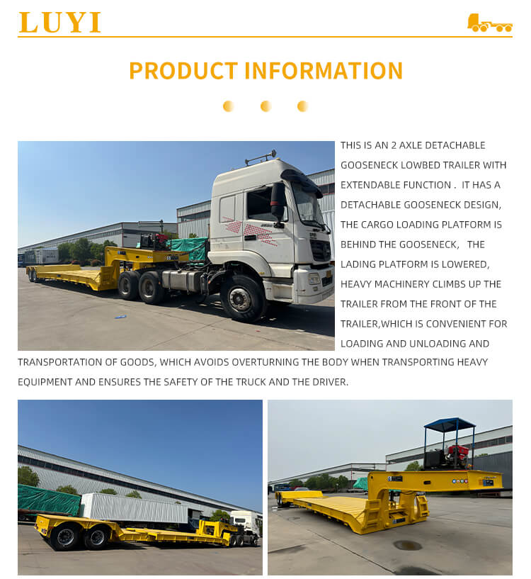 Originating from Shandong, China, the Luyi Detachable Gooseneck Lowboy Trailer is a professional semi-trailer dedicated to heavy-duty transportation. Constructed with high-quality carbon steel, its main beam adopts high-strength Q345B/ST52-3 steel, ensuring a solid and durable structure. Measuring 12000mm × 2500mm × 1650mm, it is suitable for various working scenarios.