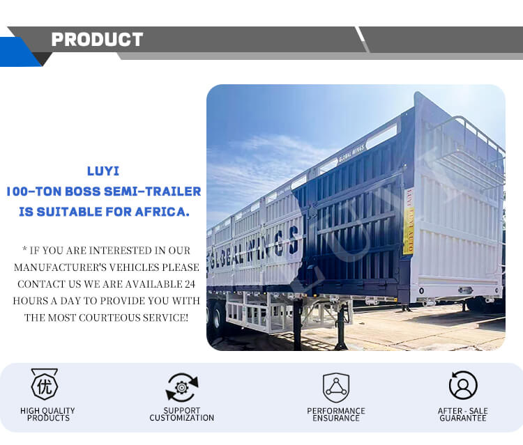 The trailer features solid and reliable configurations. It adopts a 3-axle design, with optional 13T/14T/16T/20T axles from BPW or FUWA brands, matched with mechanical or air suspension. It is fitted with 12R22.5 tires, ensuring stable driving and adaptability to various road conditions. Equipped with JOST standard 28-ton landing gear, it provides stable support and easy operation. The product supports custom body colors, balancing structural strength and personalized needs to offer a safe and flexible professional solution for heavy cargo transportation.