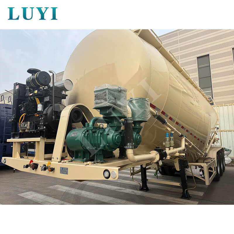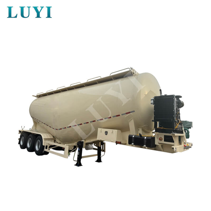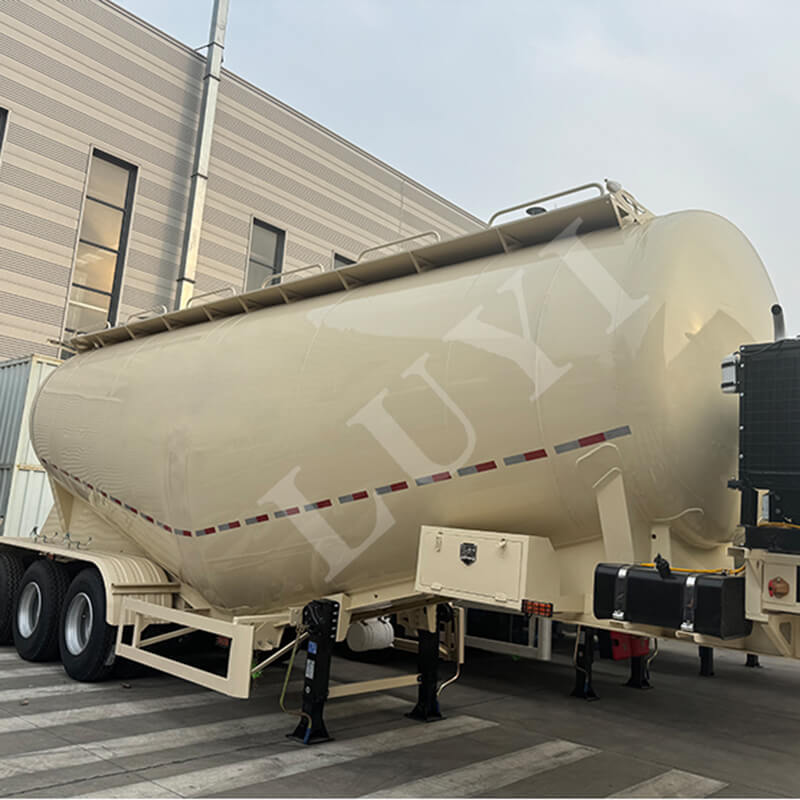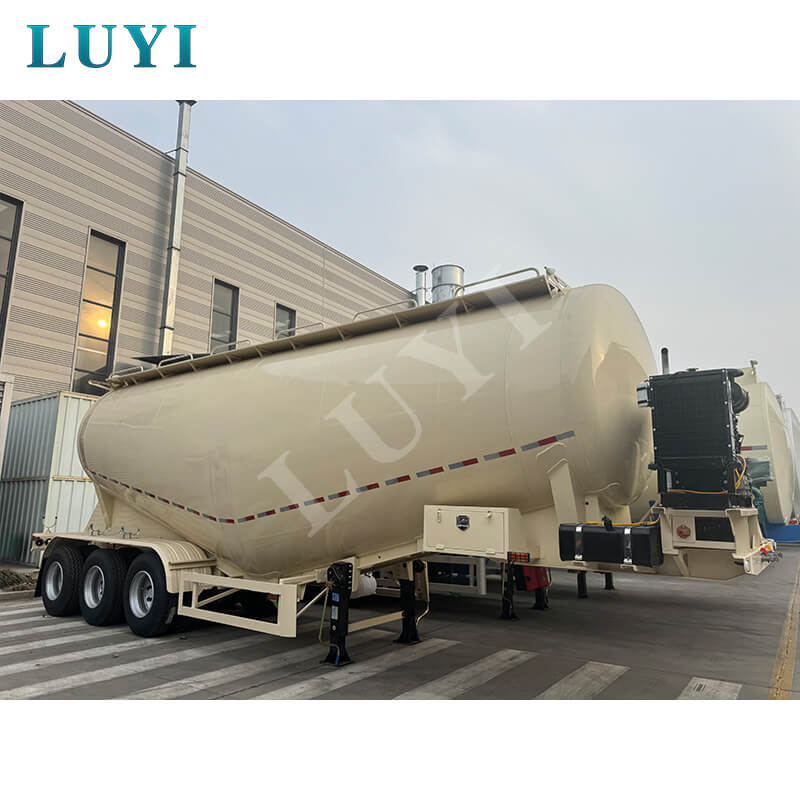 The LUYI 3-Axle 35-50 Cubic Meter Cement Tank Semi-Trailer, originating from Shandong Province, China, is a high-quality semi-trailer specially designed for efficient cement transportation. It has a maximum effective load capacity of 70 tons and a volume ranging from 35 to 50 cubic meters, flexibly adapting to transportation needs of different scales.
