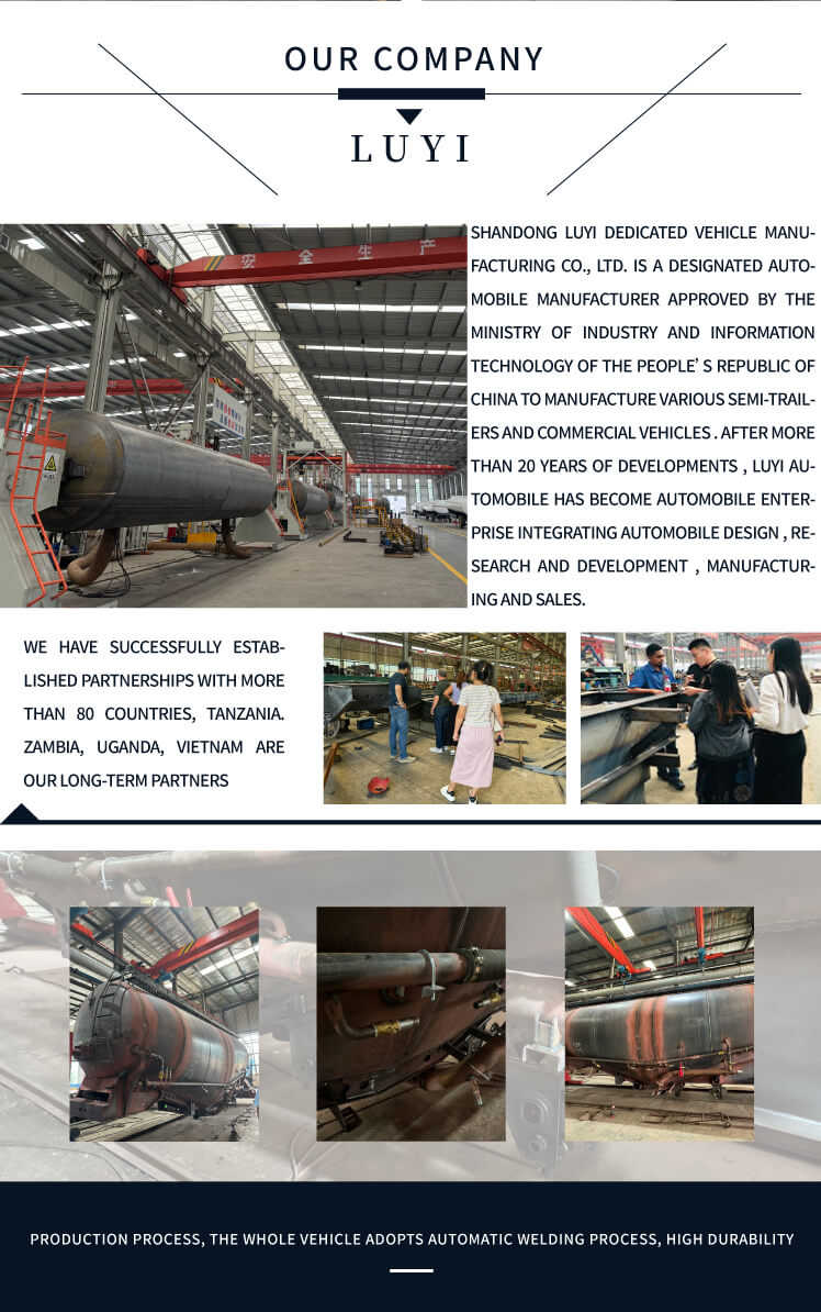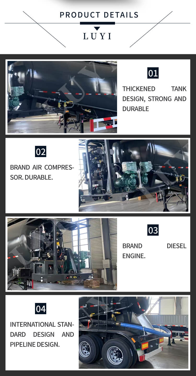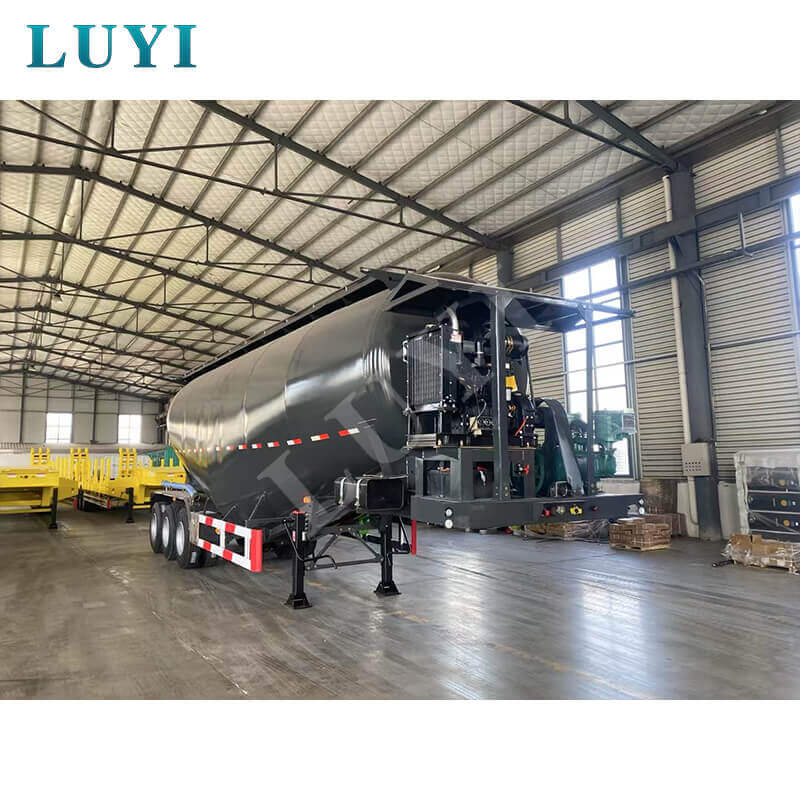 The Luyi 3-Axle 35-Cubic-Meter Cement Tank Semi-Trailer, originating from Shandong Province, China, is a high-quality semi-trailer specially built for bulk cement transportation. It has a loading capacity of 80 tons, an effective load ranging from 60 tons to 80 tons, and a maximum effective load of 80,000 kg, which can efficiently meet large-volume transportation needs.