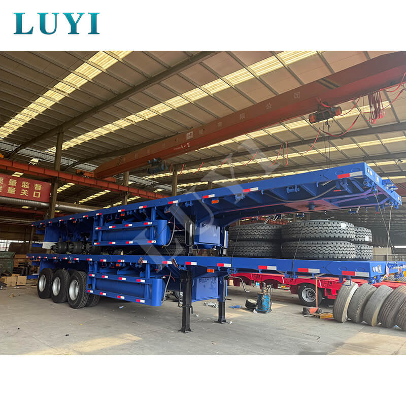 The LUYI 3-axle 4-foot 50-ton flatbed semi-trailer is a heavy-duty workhorse for industrial logistics and infrastructure projects. Its 3-axle design scientifically distributes the 50-ton load, reducing road pressure, complying with highway regulations, and ensuring driving stability. The key dimension of approximately 1.22 meters (guardrail/ground clearance) balances loading/unloading convenience and cargo protection, suitable for forklift and crane operations.