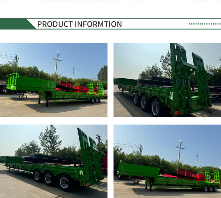 Made of high-quality steel and finished with a polyurethane painting process, the trailer has a durable appearance and supports custom colors as per customer requirements. With dimensions of 22000×3000×1600 mm and a maximum effective load of 60 tons, it can flexibly meet heavy-duty transportation needs in the 40-60 ton range. Axles are available in BPW or Fuhua brands, paired with mechanical or air suspension systems, and matched with 12R22.5 tires, ensuring stable driving and adaptability to various road conditions.