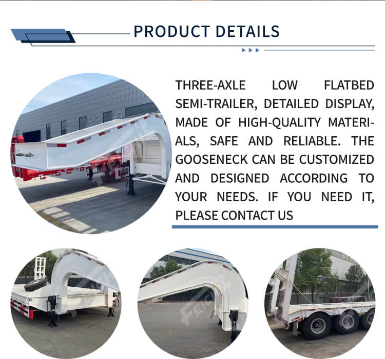 Crafted from high-quality steel, it has a size of 17000×3000×1500mm, ensuring ample space for cargo. It features 4 axles for strong load-bearing, with optional air or leaf spring suspension to guarantee stable driving and effective cargo protection. The detachable gooseneck design enhances loading flexibility, while hydraulic or manual ladder options simplify heavy equipment loading and unloading.