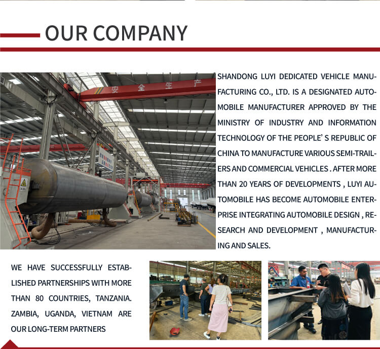 -Our Factory : Shandong Luyi Vehicle Co.,Ltd. is one of the qualified manufacturers of various trailers, like lowbed semi-trailer,flatbed trailer, cargo trailer, skeleton container semi trailer,50ft flatbed trailer,etc. With high standard machinery and automatic equipment, powerful R&D team and elite sales team, We have built long business relationship with many world famous enterprises such as SINOTRUK, SHACMAN, etc.