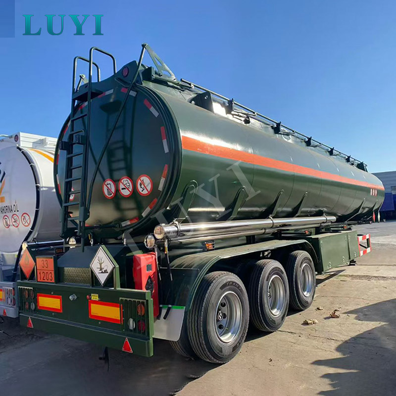 LUYI 38,000L diesel tanker truck semi-trailer, originating from Shandong, China, is a reliable dedicated trailer for asphalt transportation. With overall dimensions of 12500mm * 2500mm * 3980mm, it is made of carbon steel for sturdiness and durability, suitable for complex transportation conditions.