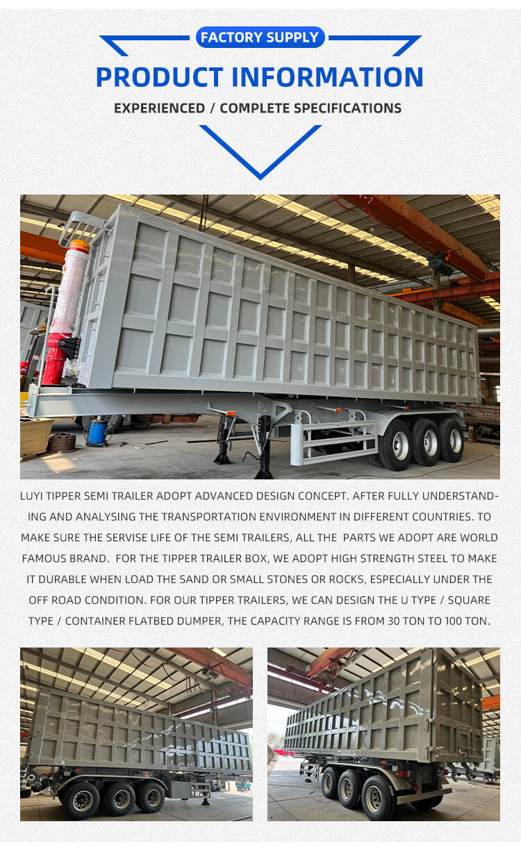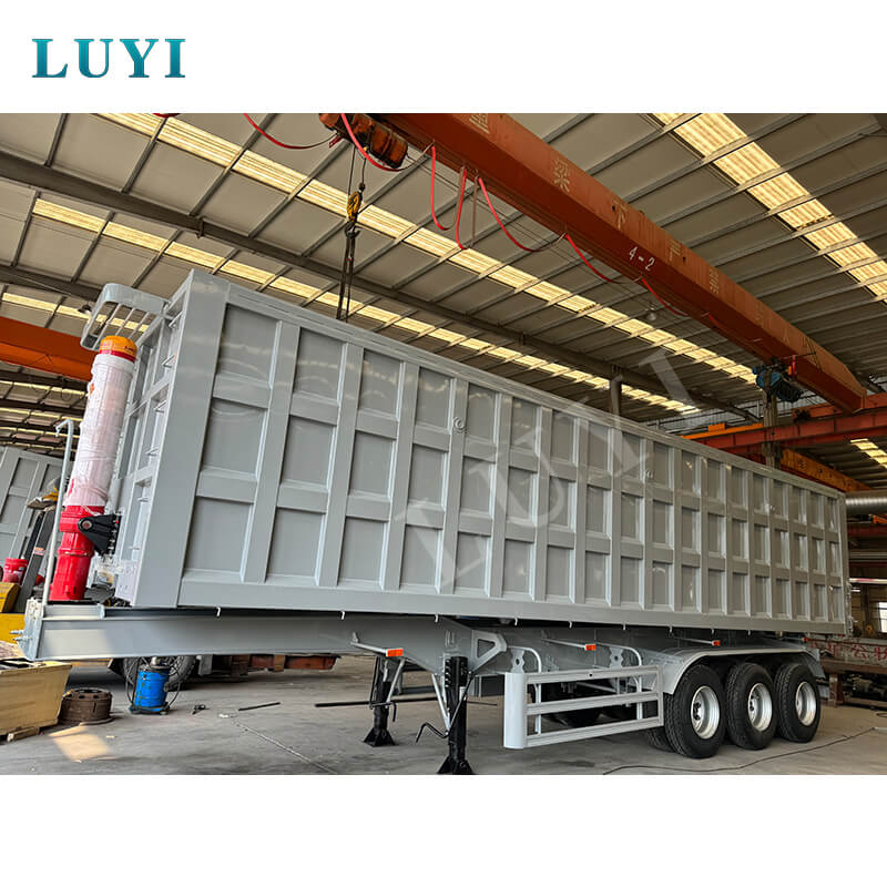 This 3-axle 50-60 ton hydraulic lift cylinder rear-dump semi-trailer from LUYI is a heavy-duty solution for sand and gravel transportation. Originating from Shandong, China, it’s constructed with high-quality steel, boasting a maximum payload of 80T to handle heavy loads effortlessly.