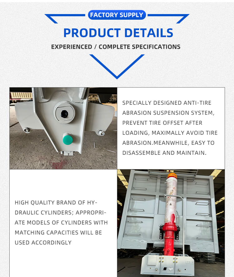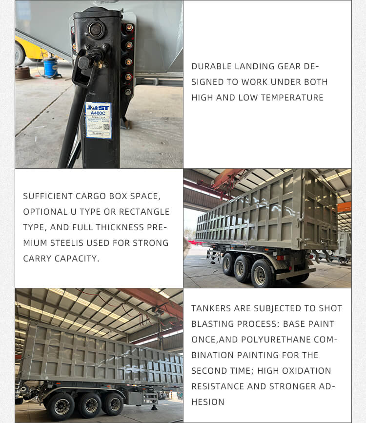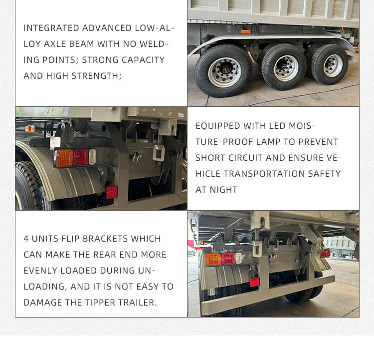 It offers flexible configurations to fit diverse needs: axle options include 2/3/4 axles from trusted brands BPW and FUWA, and suspension choices of mechanical or air suspension for stable driving. Equipped with 12R22.5 tires, a standard 28Ton landing gear, and 2"(50mm)/3.5"(90mm) JOST king pins, it ensures strong adaptability. The polyurethane painting process enhances durability, color is customizable, and it comes with a six-year warranty, making it reliable for long-term sand and gravel haulage.