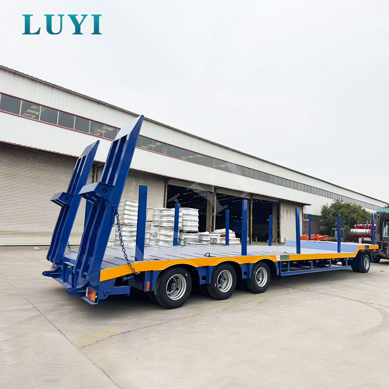 LUYI 3 Axle Lowbed Truck Semi Trailer is a high-performance transport vehicle originating from Shandong, China, designed for heavy-duty cargo transportation like excavators.