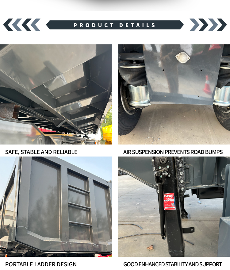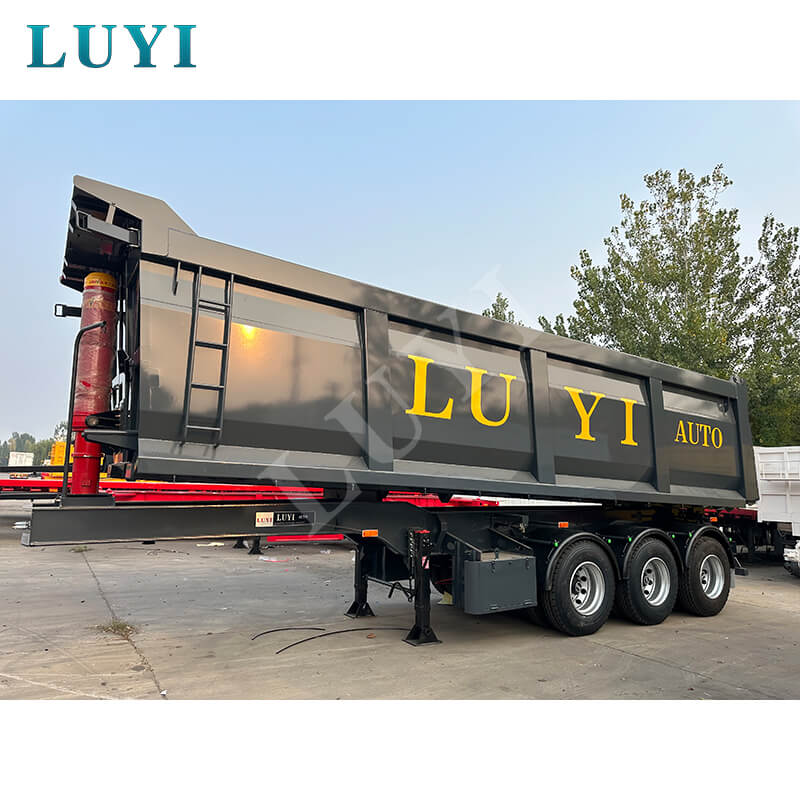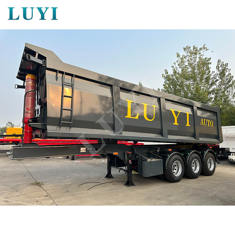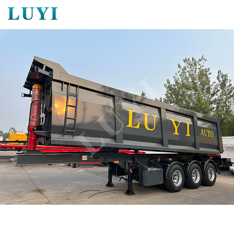 Relying on a hydraulic lifting system, the cargo box can achieve 45–60° rear-tipping for unloading. The tail-opening design makes the operation simple and efficient with a short unloading time. Equipped with air brakes, mechanical/leaf spring suspension, and a standard traction pin, it is compatible with most heavy-duty tractors and has low maintenance costs. The black coating is dirt-resistant and easy to maintain. Whether it is for short-distance transfer of materials such as coal, ore, and gravel, or compliant long-distance road transportation, it is a reliable and efficient transportation partner.