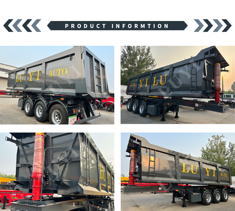 This 3-axle rear-tipping dump semi-trailer, featuring a black coating and a rectangular cargo box design, is specially built for the self-unloading and transportation of bulk materials. It is widely applicable in scenarios such as mines, construction sites, and building materials transportation. The 3-axle layout significantly enhances load-carrying capacity and driving stability, perfectly meeting heavy-load requirements and compliance limits. The rectangular cargo box has a regular volume (25–42 cbm), ensuring higher loading efficiency, and the high-strength steel frame guarantees structural durability.
