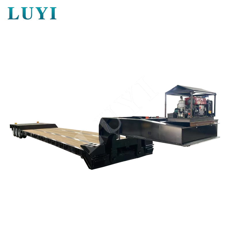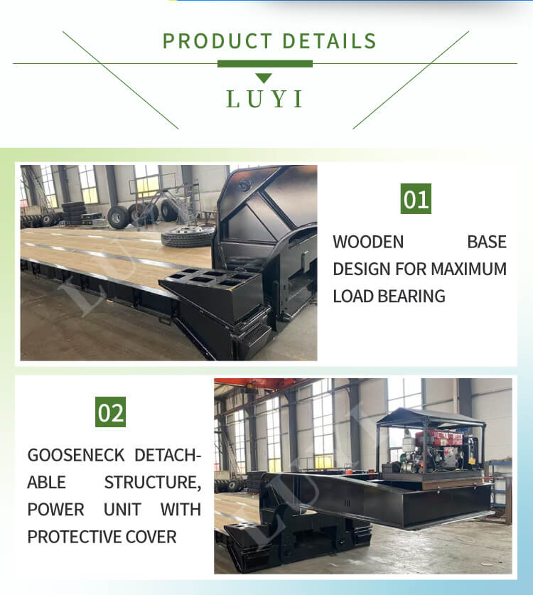Produced by Luyi Vehicle in Shandong, China, the 3-axle detachable gooseneck lowbed semi-trailer is a reliable heavy-duty transport solution with a max payload of 100 tons. It measures 15000×3000×1800mm, perfectly fitting the needs of truck trailer applications.