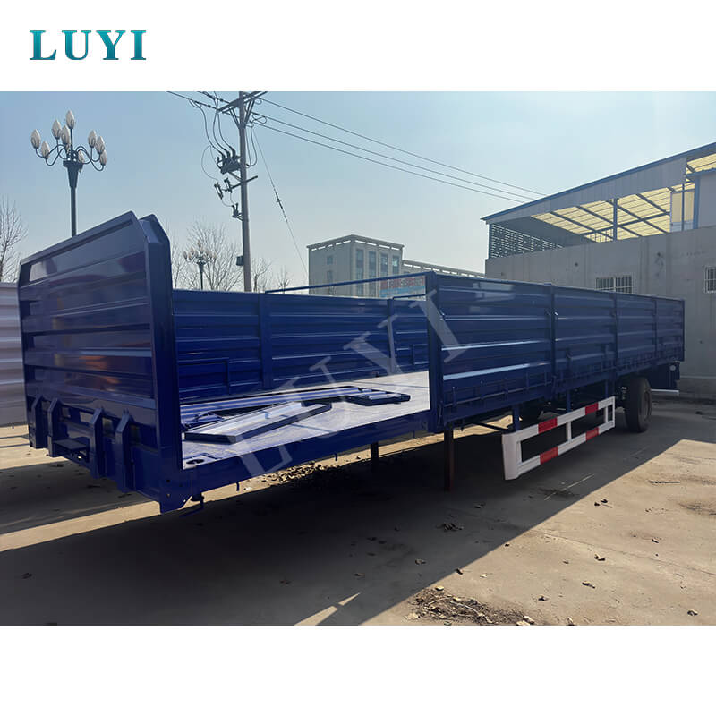 Originating from Shandong Province, China, the Luyi 3-Axle Detachable Panel Stake Semi-Trailer is a high-quality truck trailer (also called a flatbed trailer) suitable for efficient freight transport. Its body is made of high-strength steel, combining durability with stable load-bearing capacity. With a maximum effective payload of 60 tons, it can flexibly transport containers and bulk goods, easily meeting diverse logistics needs.