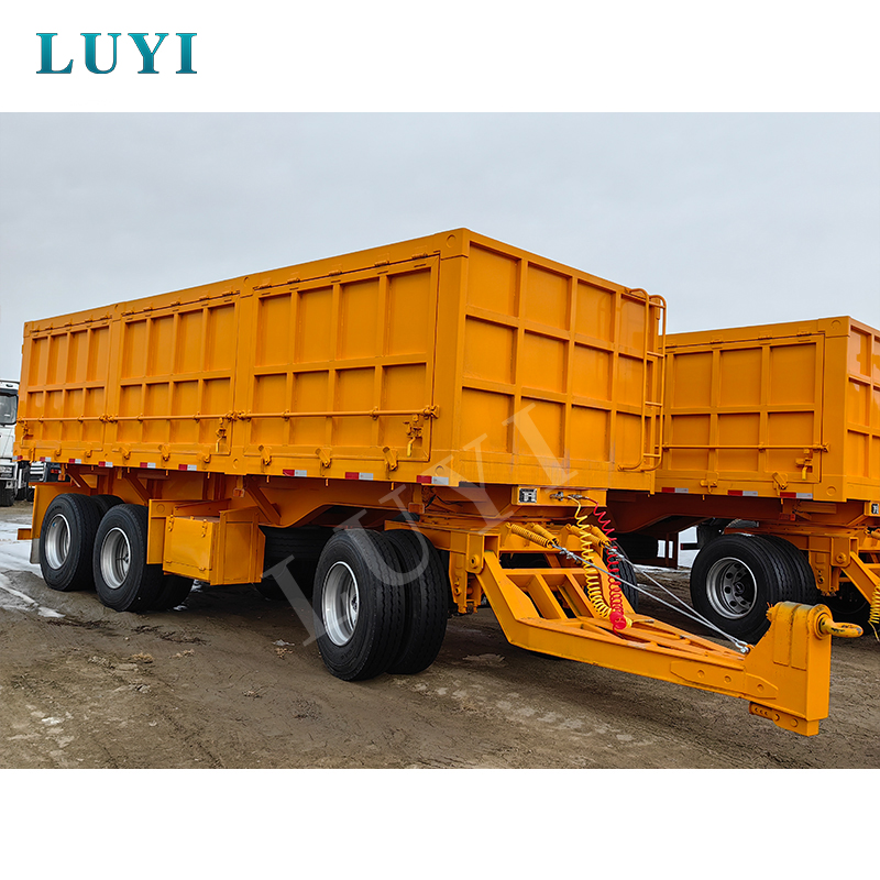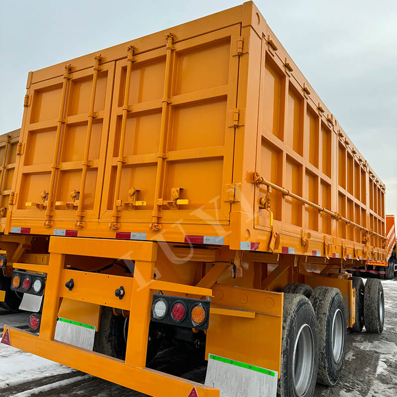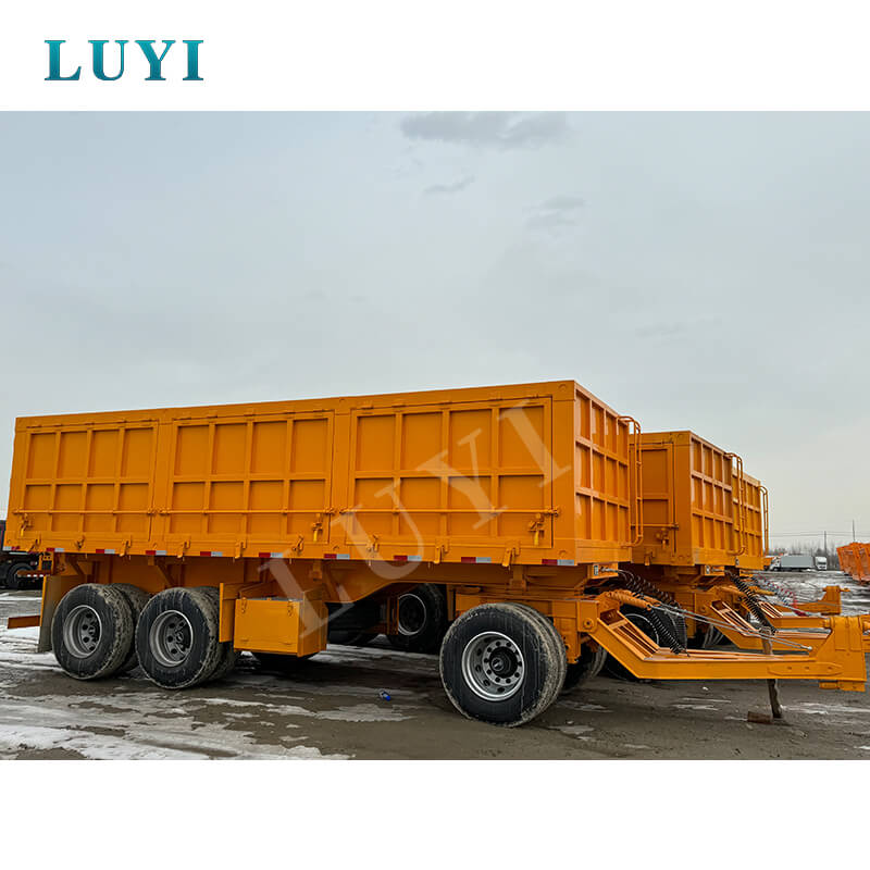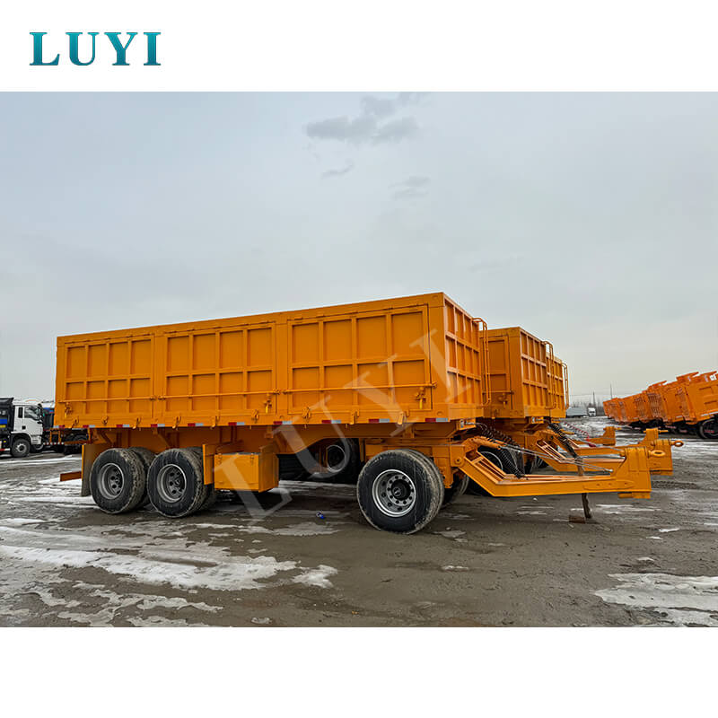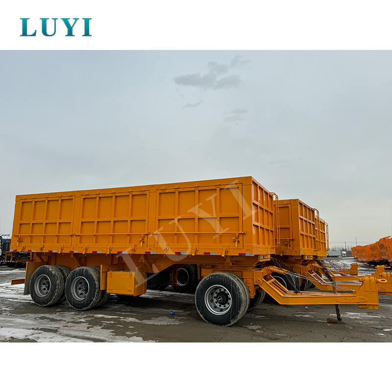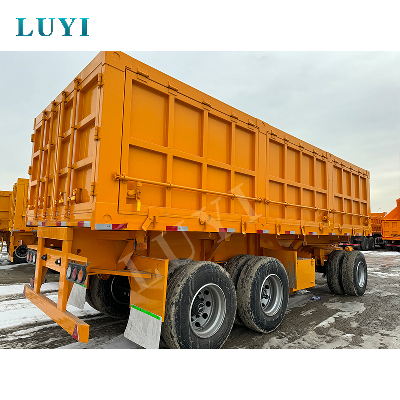 Originating from Shandong Province, China, the LUYI 3-Axle Double-Rod Side-Tipping Dump Semi-Trailer is a high-quality freight semi-trailer suitable for multi-scenario cargo transportation. The trailer body is made of high-quality steel, with dimensions of 7500×2500 mm. It features a sturdy structure and stable load-bearing capacity, with a maximum effective payload of 25 tons, enabling efficient transportation of containers and bulk goods.