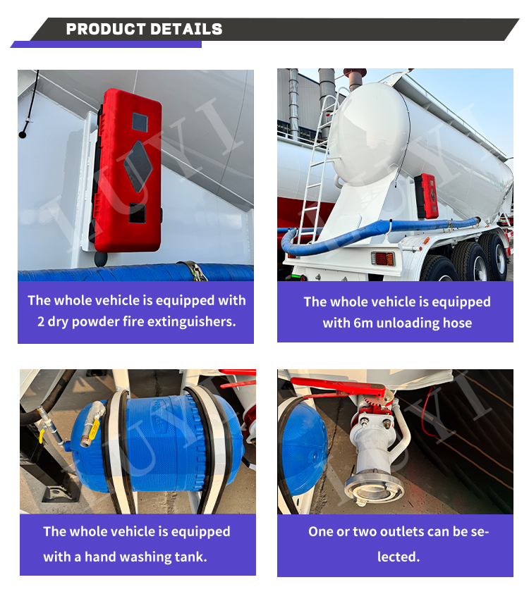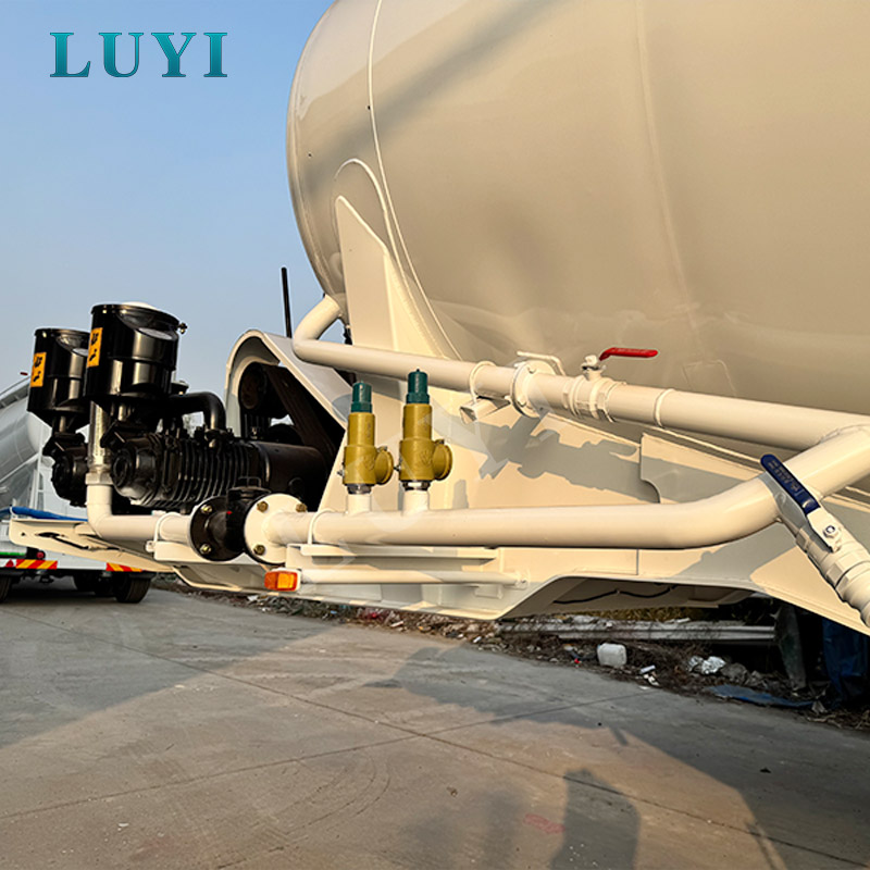 The LUYI brand 3-axle 30-cubic powder tank semi-trailer, originating from a high-quality manufacturing base in Shandong, China, is tailor-made for dry bulk flour transportation scenarios. The entire vehicle is made of high-strength carbon steel, with the main beam using Q345B/ST52-3 standard steel, which combines durability and load-bearing stability. The scientific size design of 12000mm*2500mm*3980mm is suitable for various transportation scenarios.