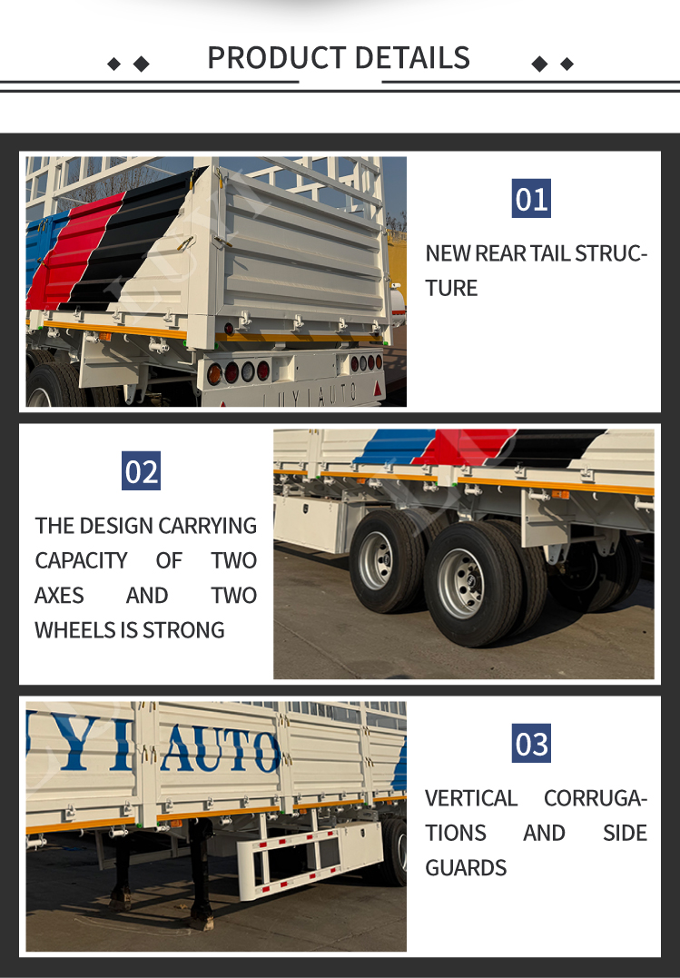 LUYI's newly designed 2-axle high fence side wall semi-trailer offers dual load capacities of 30 and 60 tons, perfectly catering to medium and heavy-duty freight needs like building materials, industrial equipment and farm produce. The high fence structure effectively prevents cargo spillage dur......