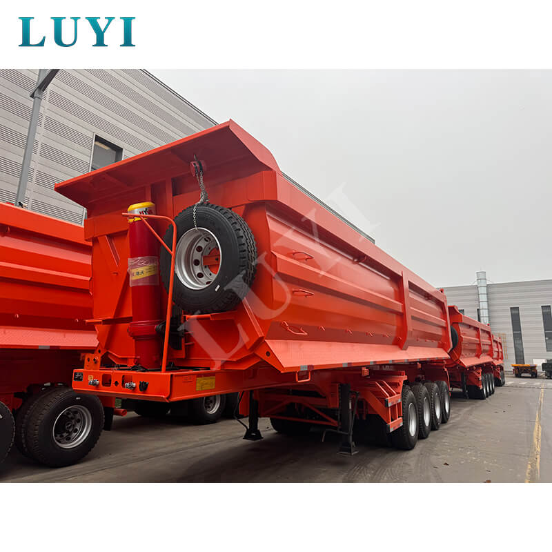 The Luyi 4-Axle 100-Ton U-Type Rear-Tipping Dump Semi-Trailer, originating from Shandong Province, China, is a brand-new rear-unloading semi-trailer specially designed for sand and gravel transportation. The trailer body is made of high-quality steel, with dimensions of 9.6×2.5×2 meters and a volume of 35-60 cubic meters, enabling efficient loading of bulk goods such as sand and gravel.