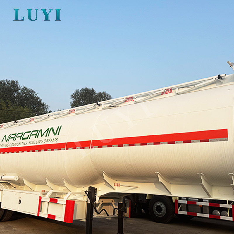 The 4-axle 54,000L fuel tanker semi-trailer from LUYI, originating in Shandong, China, is a high-quality semi-trailer specifically designed for fuel transportation. Crafted from premium steel, it boasts exceptional durability and a flexible loading capacity ranging from 30,000L to 60,000L. Equipped with 4 axles (available in 2/3/4/5 axles options) paired with renowned 13/16T FUWA/BPW axles, it delivers an impressive maximum payload of 80 tons, ensuring outstanding transportation efficiency.