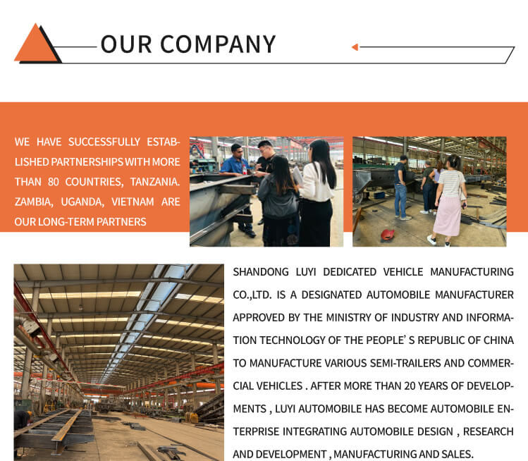 Our factory not only produces tractors, but also dump trucks, sprinkler trucks, truck cranes, mixer trucks, dump trailers,tank trailers, low-bed trailers, dust removal trailers, etc.Our factory is large in scale and can customize different products according to different customer requiremen