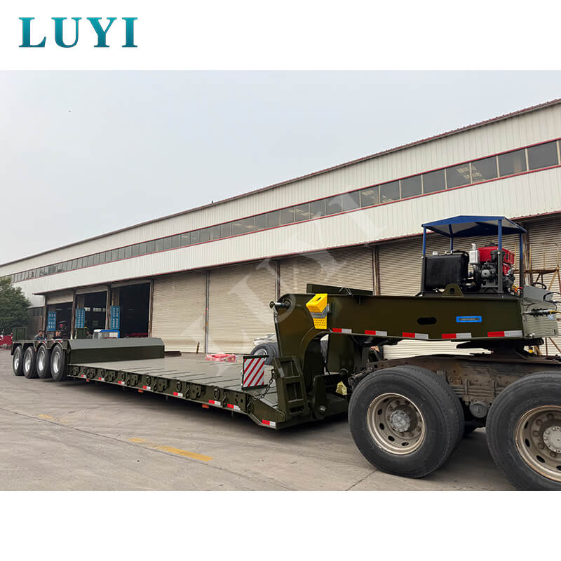The Luyi 4-Axle Detachable Gooseneck 150-Ton Low-Bed Semi-Trailer, originating from Shandong Province, China, is a high-quality semi-trailer specially designed for heavy equipment transportation. Constructed with high-grade steel, it boasts excellent load-bearing capacity, with a maximum effective payload of 100 tons, enabling stable transportation of various types of heavy equipment.
