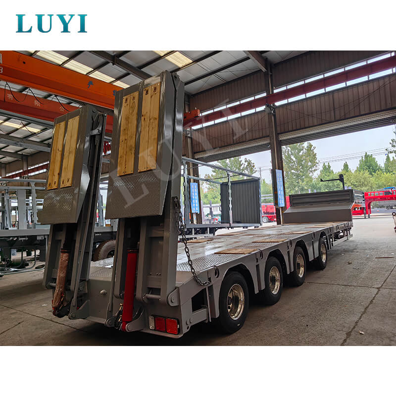 LUYI 4-Axle Telescopic 6-Meter Lowboy Semi-Trailer, produced in Shandong Province, China, is a brand-new truck trailer with excellent performance. Its body is made of high-quality steel, featuring a sturdy and durable structure, and its maximum effective payload ranges from 20,001 kg to 25,000 kg, which can meet the transportation needs of various goods.