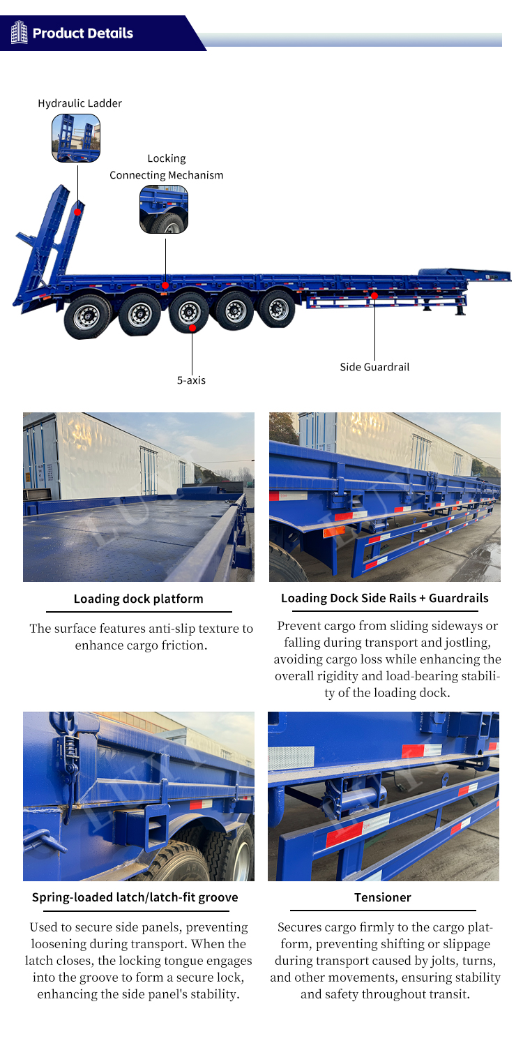Equipped with premium components, it features Fuwa/BPW 13-ton axles paired with an air suspension system, ensuring exceptional driving stability and shock absorption. The Jost 28-ton two-speed landing gear enables efficient lifting and lowering operations. Customers can choose from tire options including 315/80R22.5, 12R22.5, and 11.00R20 to suit diverse road conditions. The 24V LED lighting system delivers bright illumination with low energy consumption, and the body color is customizable to meet individual requirements. Backed by Luyi's reliable quality, this semi-trailer provides a trusted heavy-haul solution for global clients.