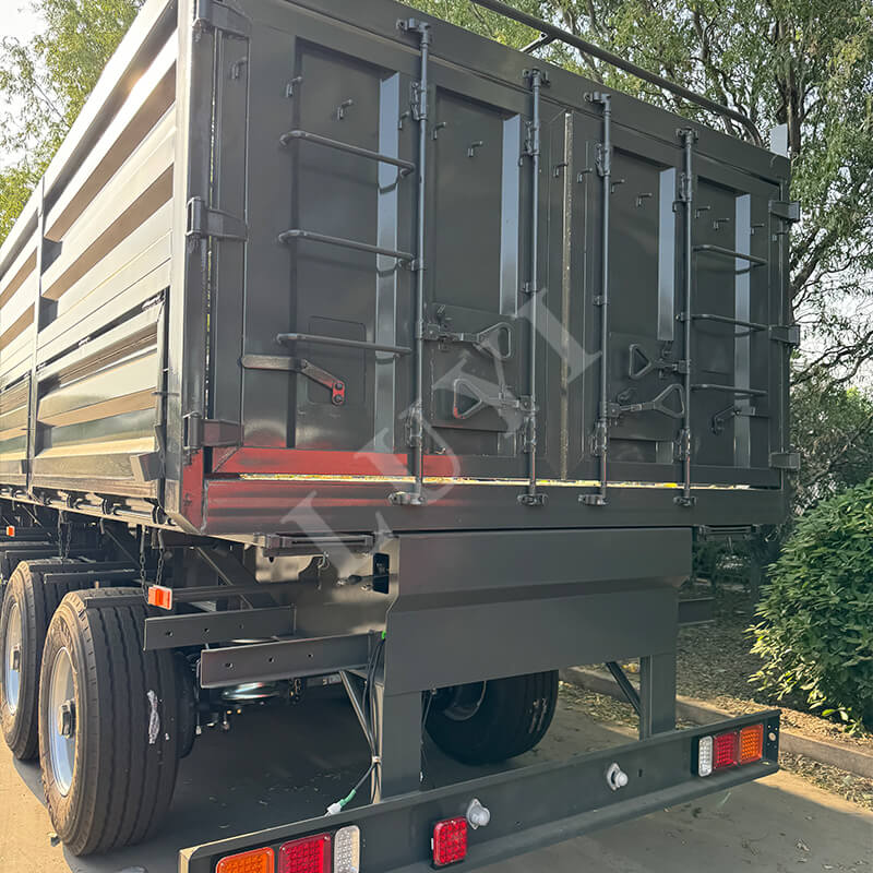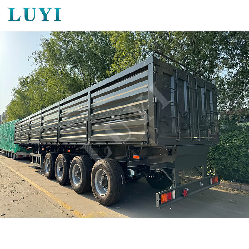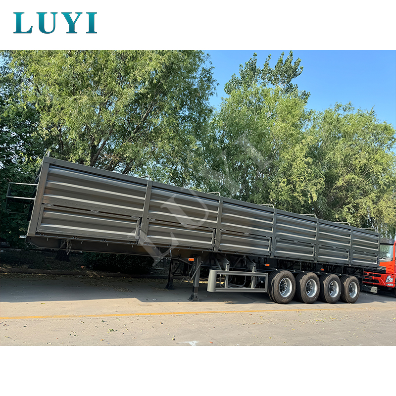 LUYI 60-ton class 4-axle side-tipper semi-trailer is customized for heavy-duty bulk cargo transportation in scenarios such as mines and infrastructure projects. It adopts a side-tipping hydraulic unloading structure, enabling quick unloading in narrow spaces and complete compartment emptying within minutes, greatly improving freight turnover efficiency. Core load-bearing components are made of high-strength durable steel, paired with a 4-axle design and air suspension airbags. This not only distributes the pressure of 60-ton heavy loads and meets regulatory requirements, but also adjusts shock absorption hardness according to the load, reducing cargo jolting and road impact. The whole vehicle balances efficient unloading, heavy-load durability and driving stability, making it a reliable choice for heavy-duty bulk freight transportation.