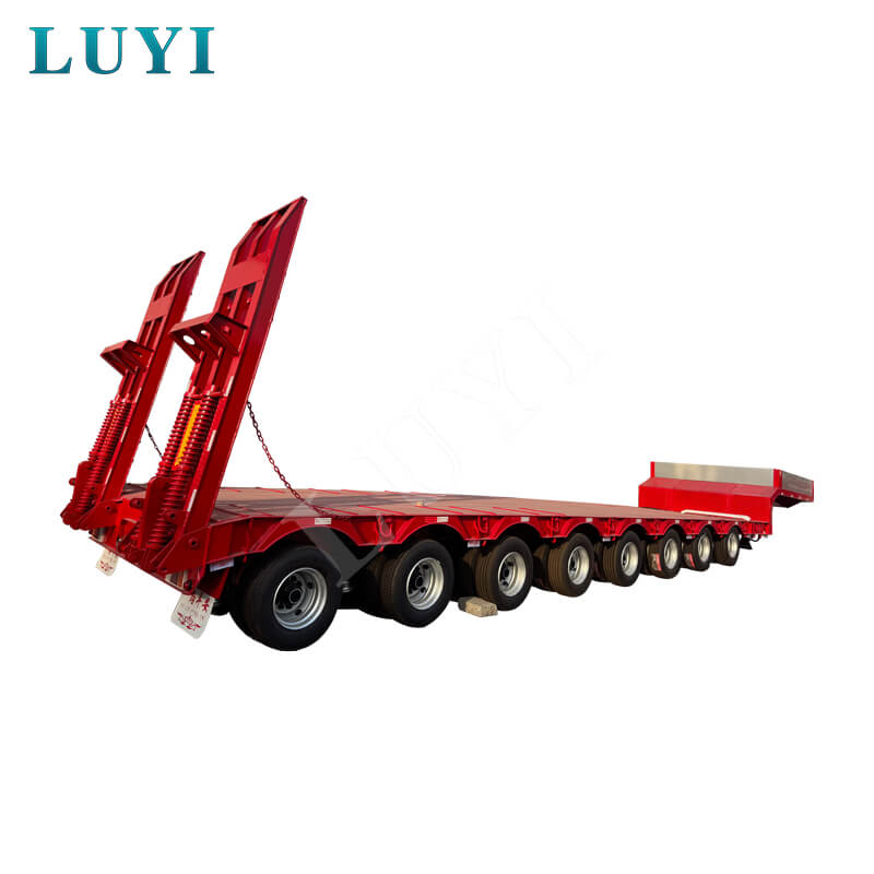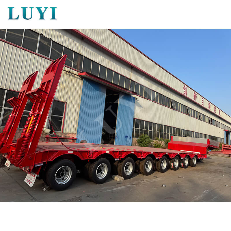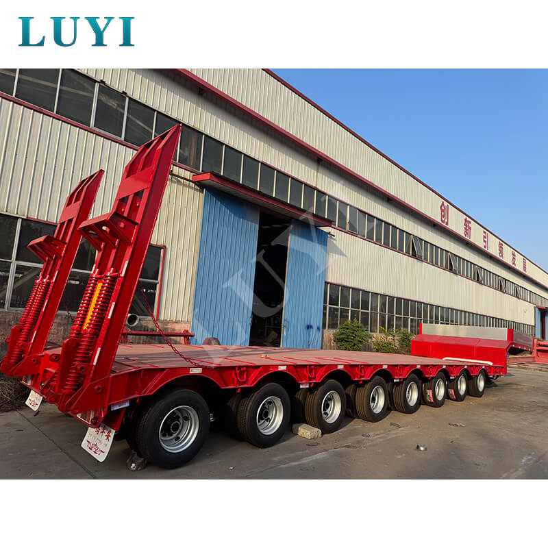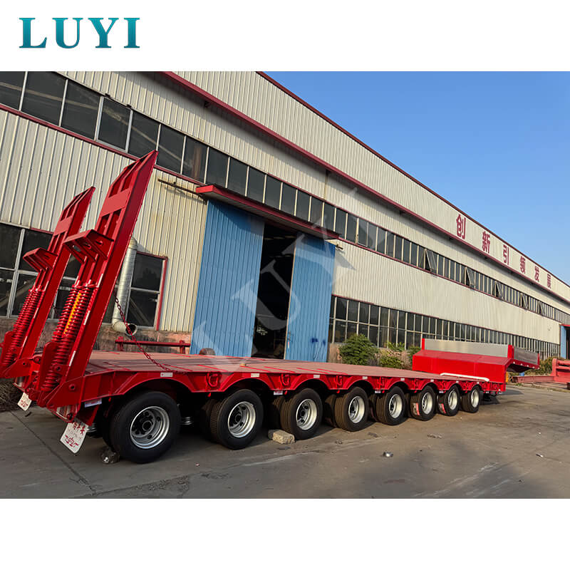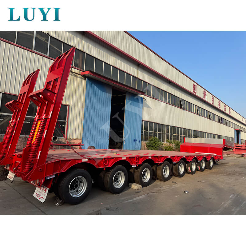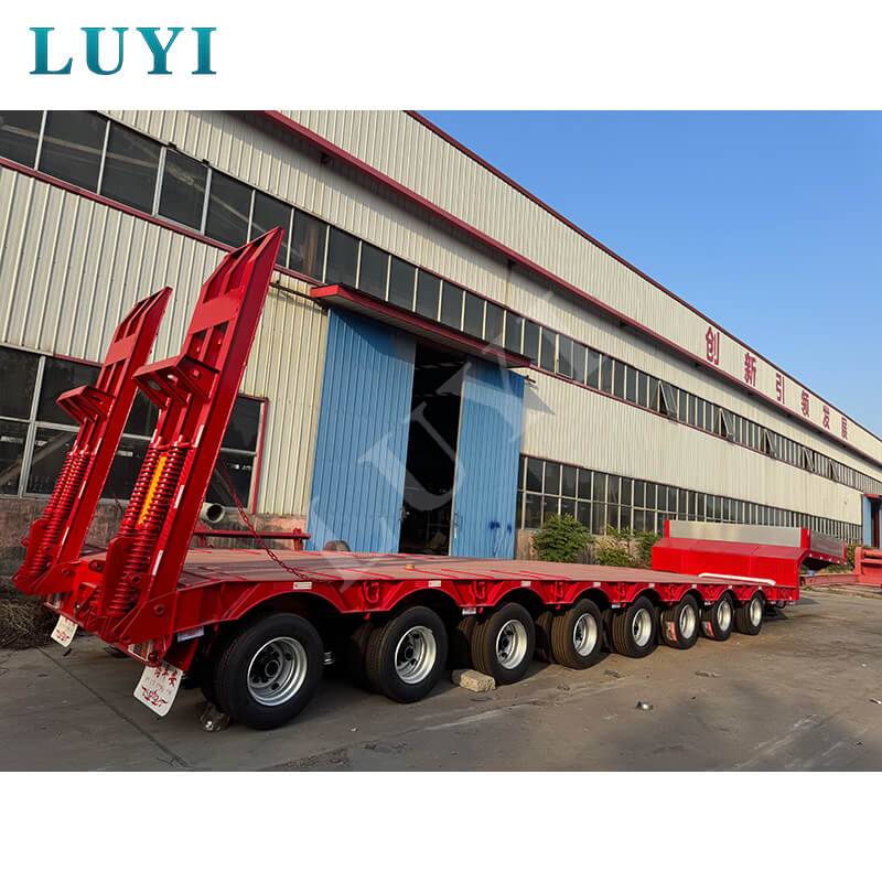 Luyi 8-Axle 150-Ton 40ft Loader Hydraulic Low-Bed Semi-Trailer, originating from Shandong Province, China, is a high-quality semi-trailer specially designed for heavy cargo transportation. Made of high-grade steel, it combines sturdiness and durability, with a maximum effective payload of 100 tons and a maximum load capacity of 150 tons, easily meeting various heavy-duty transportation needs.
