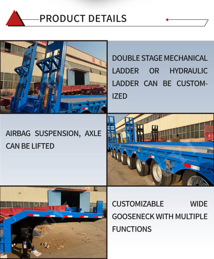 Built on high-quality steel, its main beam uses high-strength T700/Q345 steel and is finished with a polyurethane paint process, combining durability and corrosion resistance. With a maximum effective load of over 30,000 kg and a load-bearing capacity of 150 tons, it can easily meet ultra-heavy transportation needs. Measuring 19,000×3,000×1,800 mm, it is equipped with 13-ton Fuwa brand axles, and the suspension system offers optional mechanical or air suspension. It is paired with tires in multiple specifications such as 11.00r20 and 12r22.5, adapting to complex road conditions.