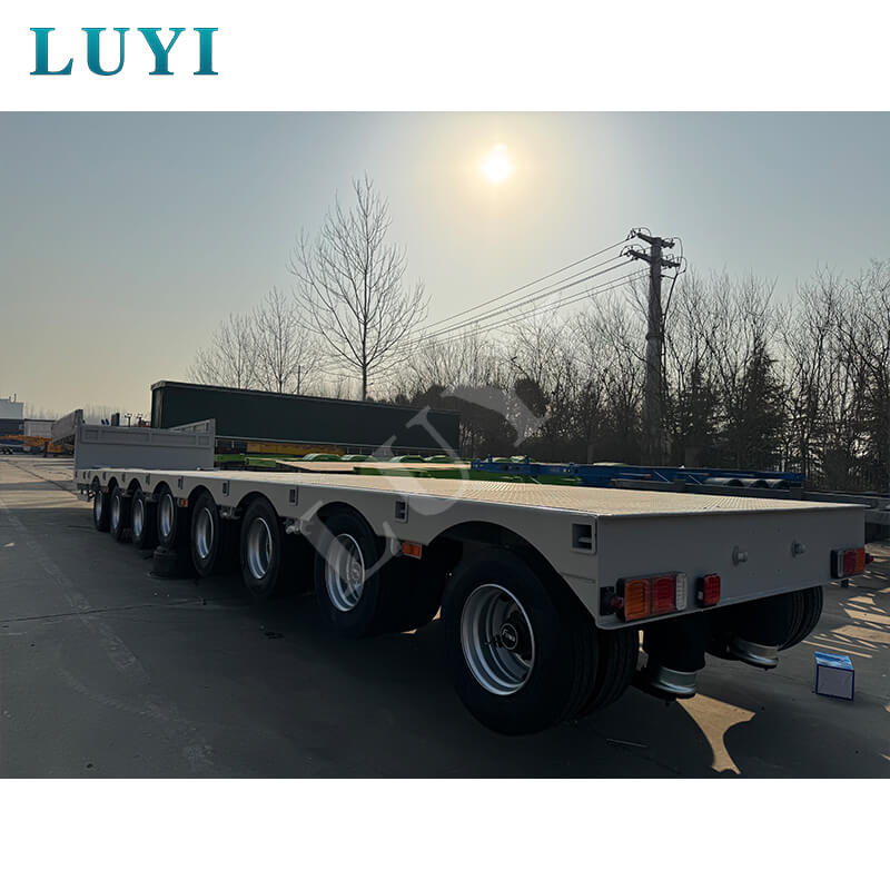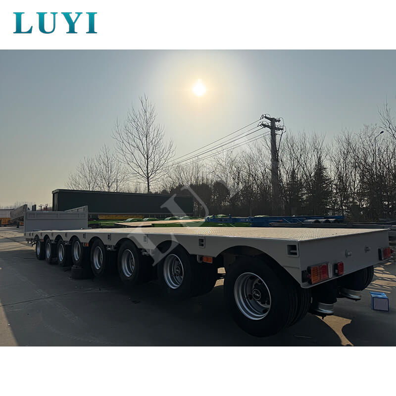LUYI 8-Axle 17m 80-Ton Extendable Air-Suspension Low-Bed Semi-Trailer, a high-performance semi-trailer from Shandong, China, is dedicated to heavy-duty equipment transportation. It adopts carbon steel or aluminum as materials, with an extendable design to fit different cargo lengths, and a maximum payload of 80 tons to meet heavy-load demands.