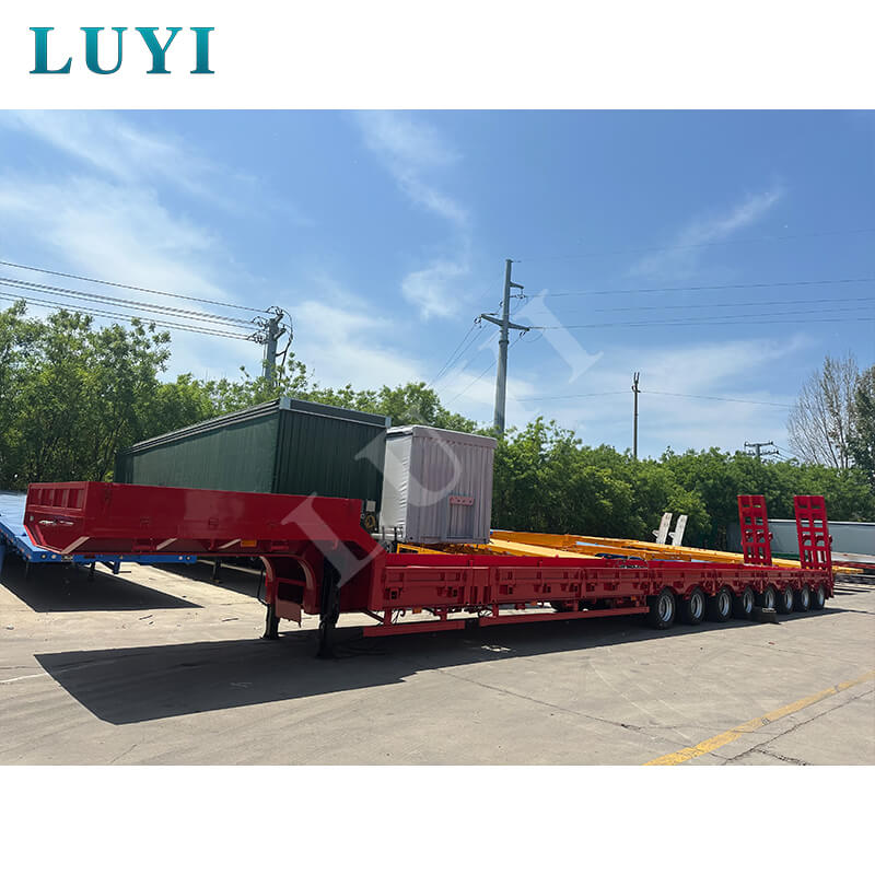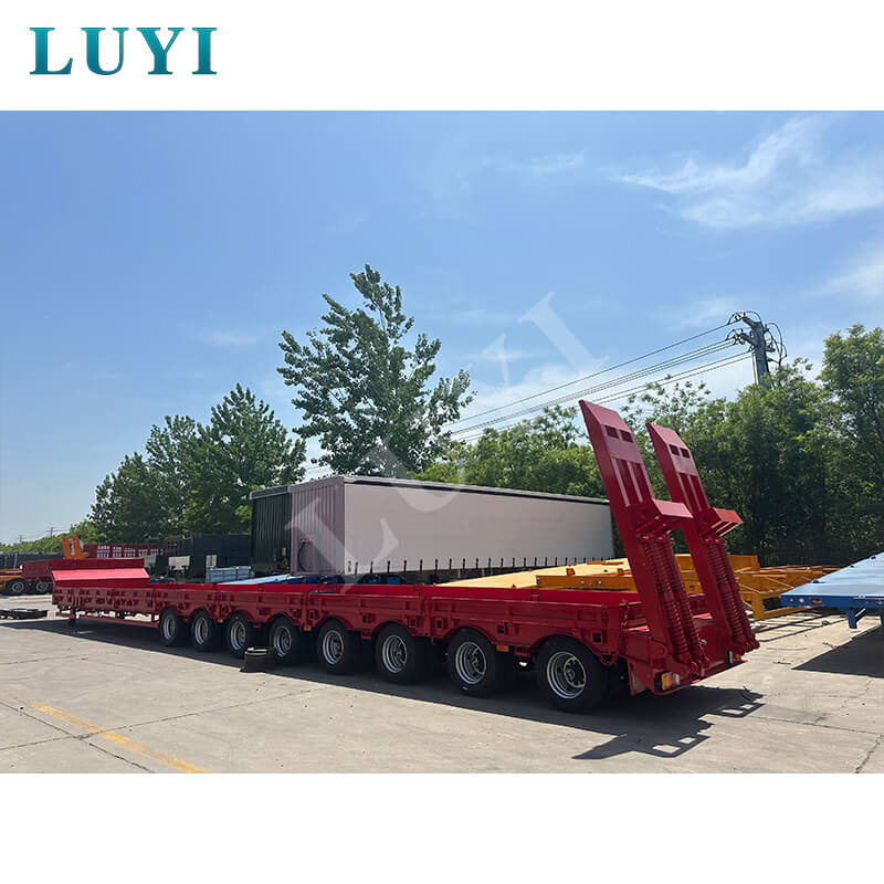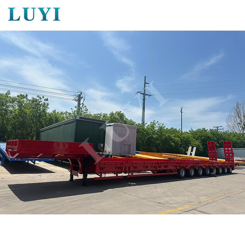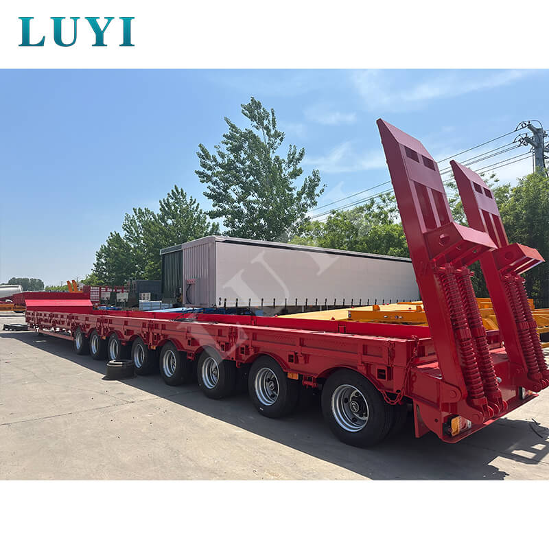 Originating from Shandong Province, China, the Luyi 8-Axle Retractable Lowboy Semi-Trailer is a professional heavy-duty transport semi-trailer, mainly made of carbon steel and aluminum. Equipped with 8 axles from renowned brands like Fuwa and BPW, it features mechanical or air suspension and is compatible with various tire specifications including 12R22.5, 12.00R20, and 11R22.5, boasting robust load-bearing capacity with a maximum effective payload of 100 tons.