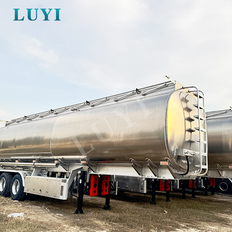The LUYI brand all-aluminum 48,000-liter three-axle palm oil transport semi-trailer, originating from CLW, is the preferred equipment for long-distance palm oil transportation. The body dimensions are 1300025003600mm, made of high-quality steel, with a self-weight of 12,500kgs. The load capacity ranges from 30T to 60T, with a maximum effective payload of 50 tons, balancing carrying capacity and transportation efficiency.