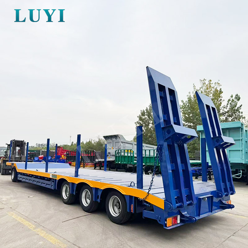 LUYI 3 Axle Lowbed Truck Semi Trailer is a high-performance transport vehicle originating from Shandong, China, designed for heavy-duty cargo transportation like excavators.