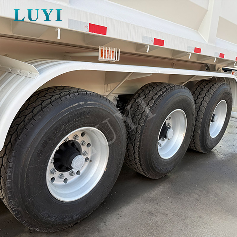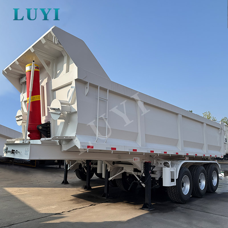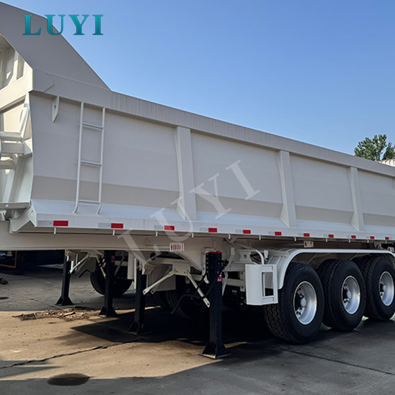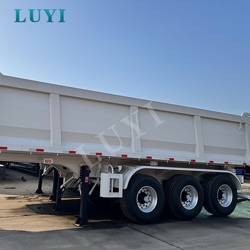 Originating from China, the LUYI 3-axle 60-ton rear-tipping dump semi-trailer is a high-performance choice for heavy-duty transportation, empowering efficient operations with its outstanding capabilities. The entire vehicle is exquisitely crafted from high-quality steel, boasting both robust load-bearing capacity and long-lasting durability, easily withstanding the multiple challenges of complex road conditions.