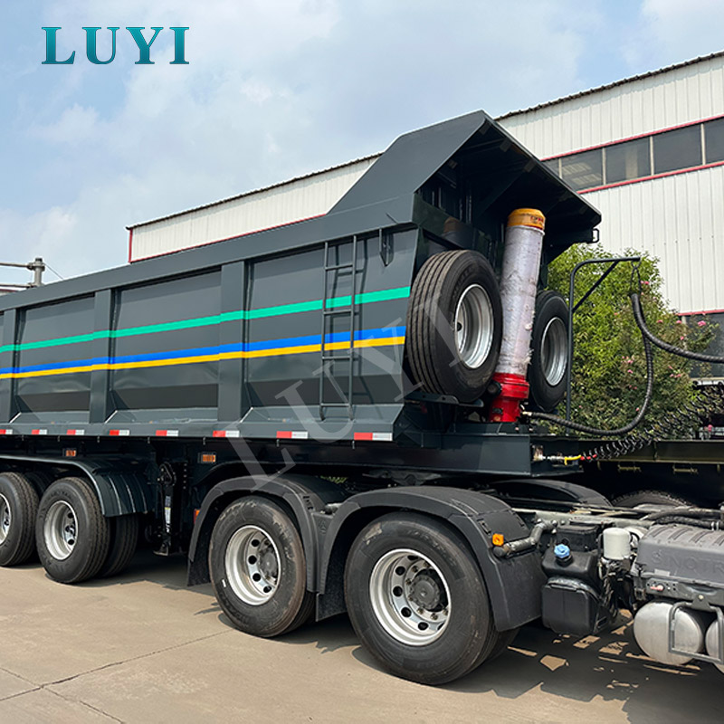 The 4-axle 100-ton U-shaped hydraulic rear dump semi-trailer from LUYI, originating in Shandong, China, is a dedicated tool for transporting bulk goods such as sand, gravel and coal. Constructed with high-quality carbon steel, it has precise dimensions of 12050x2550x3600MM and a maximum load capacity of 100 tons, whose powerful performance meets the needs of heavy-duty transportation.
