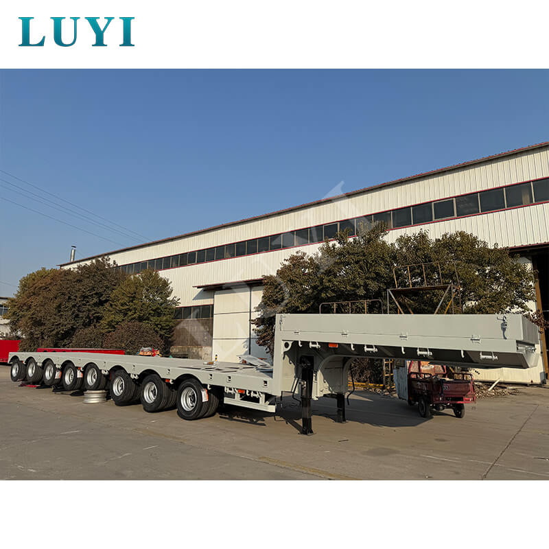 Originating from Shandong, China, the LUYI 8-axle 17m heavy-duty low-bed semi-trailer is a high-performance equipment tailored for heavy cargo transportation. Boasting an 80-ton load capacity and a maximum payload exceeding 30,000 kg, it effortlessly handles large engineering machinery and heavy components. With dimensions of 16900*3000*1800 mm, the low-bed design adapts to over-height cargo, effectively avoiding transportation height restrictions.