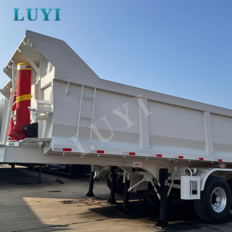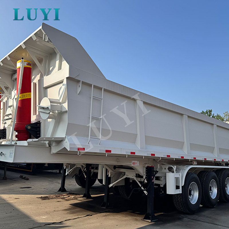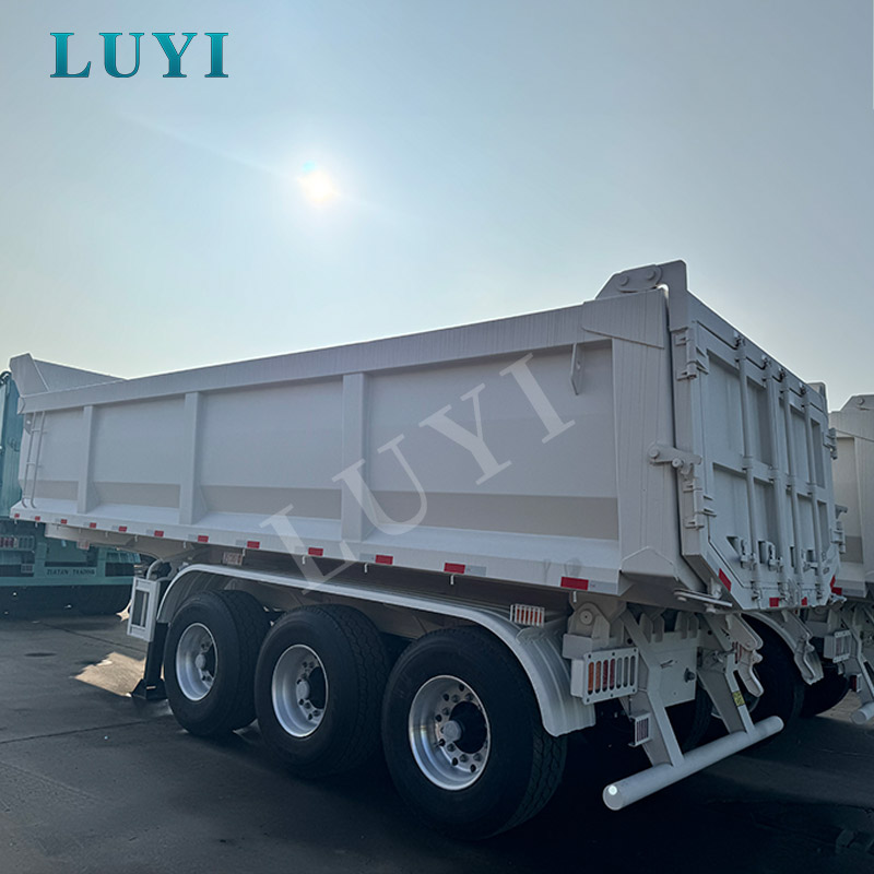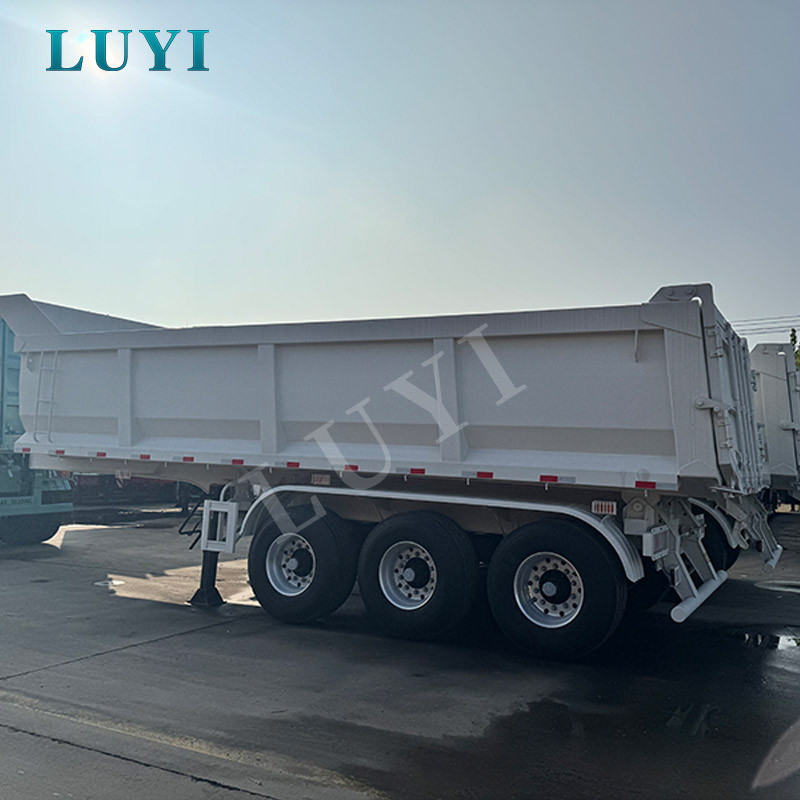 Originating from China, the LUYI 3-axle 60-ton rear-tipping dump semi-trailer is a high-performance choice for heavy-duty transportation, empowering efficient operations with its outstanding capabilities. The entire vehicle is exquisitely crafted from high-quality steel, boasting both robust load-bearing capacity and long-lasting durability, easily withstanding the multiple challenges of complex road conditions.