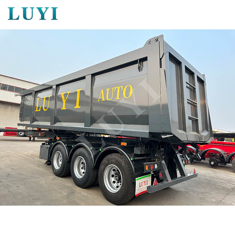 This 3-axle rear-tipping dump semi-trailer, featuring a black coating and a rectangular cargo box design, is specially built for the self-unloading and transportation of bulk materials. It is widely applicable in scenarios such as mines, construction sites, and building materials transportation. The 3-axle layout significantly enhances load-carrying capacity and driving stability, perfectly meeting heavy-load requirements and compliance limits. The rectangular cargo box has a regular volume (25–42 cbm), ensuring higher loading efficiency, and the high-strength steel frame guarantees structural durability.