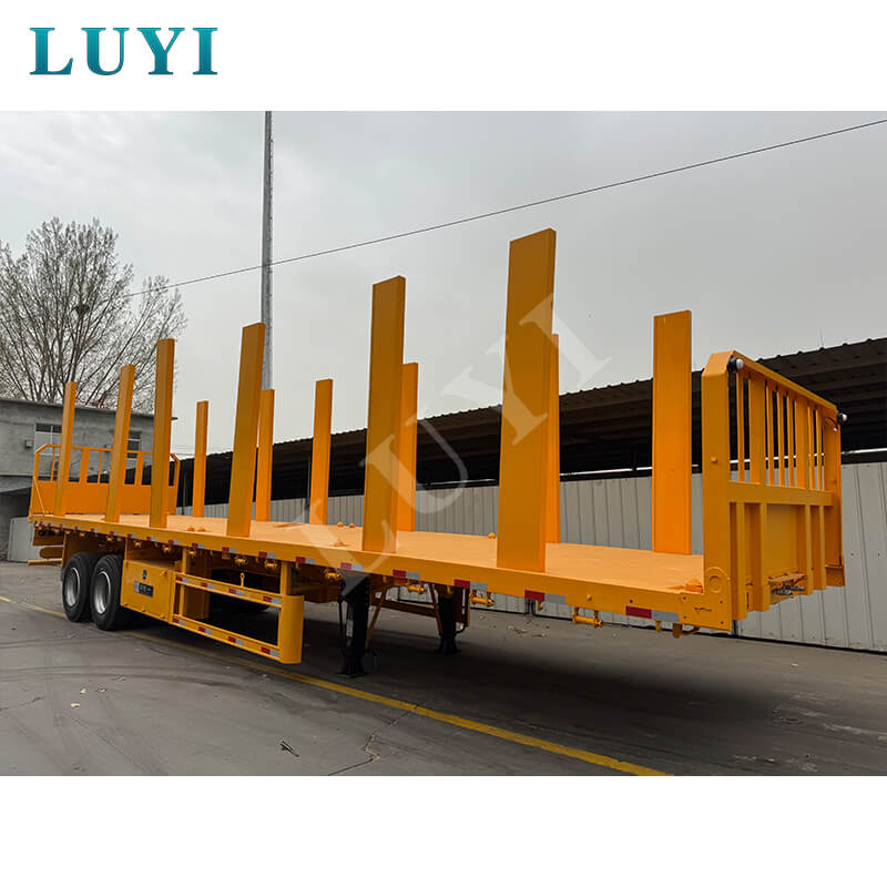 LUYI's 2-axle 40-ton column flatbed trailer is tailored for wood transportation with extensive customization options. Adjust the sideboard height (30-80cm available) to fit logs, lumber, or other wood products, and choose between checker plate steel or anti-slip coated decks for enhanced grip.