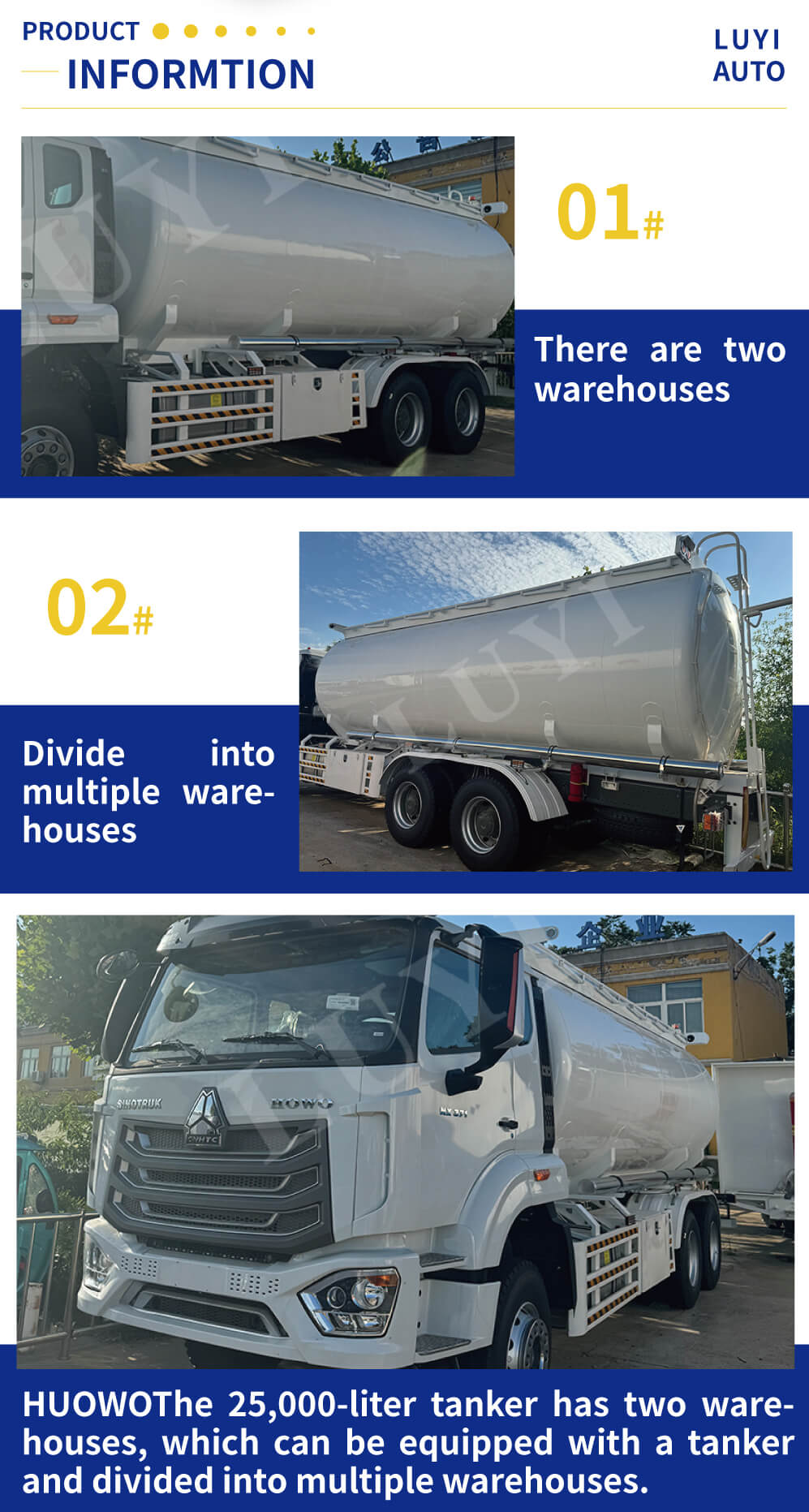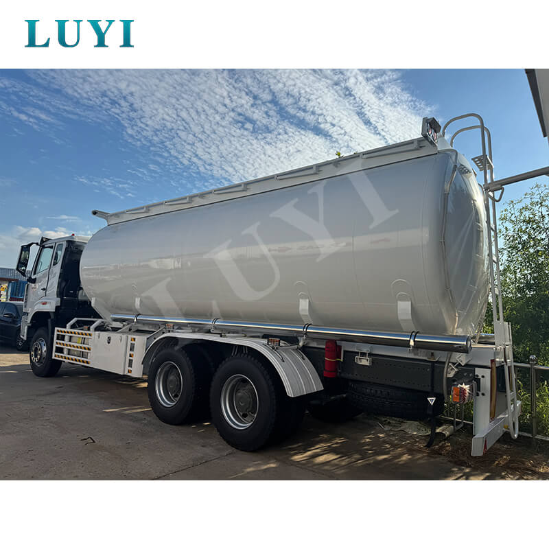 This oil tank semi-trailer is from Shandong, China, and belongs to the Sinotruk Howo NX brand. It is specially designed for oil transportation. The vehicle has a 6×4 drive configuration, with a total weight of ≥30 tons and a load-carrying capacity of 31-40 tons. The tank volume is 25,000 liters, which can efficiently meet the needs of large-scale oil transportation.