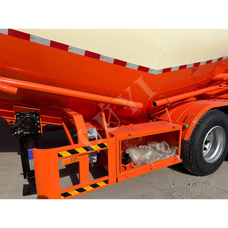 The trailer dimensions are 10500×2550×4000 mm. It is equipped with two options of mechanical/air suspension, paired with a 3-axle stable structure and 28-ton heavy-duty outriggers to ensure stability during parking and driving. The dual-line braking system enhances safety. Tire options include various specifications such as 11.00r20 and 12r22.5, and the kingpin is available in two models: JOST 50 mm / 90 mm. In addition, the color can be customized according to needs, fully adapting to different transportation scenarios and aesthetic requirements, making it a reliable equipment for bulk cement transportation.