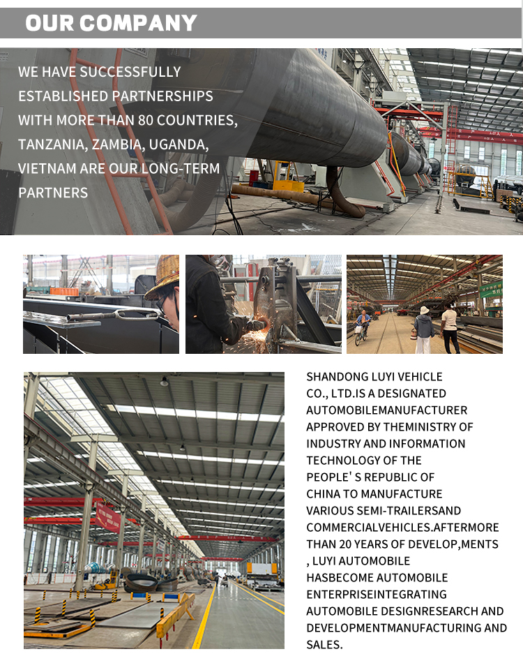 In terms of configuration, it is highly professional. It is equipped with 6 13-ton BPW/FUWA brand axles, combined with a mechanical suspension system, ensuring stable driving and excellent load-bearing performance. It comes with JOST brand landing legs and a 2-inch (50mm) or 3.5-inch (90mm) JOST kingpin, providing reliable connection and convenient operation. Rims are available in various specifications from 8.00-20 to 9.0-22.5, and tires are compatible with multiple models such as 11.00r20 and 12r22.5, suitable for different road conditions.
