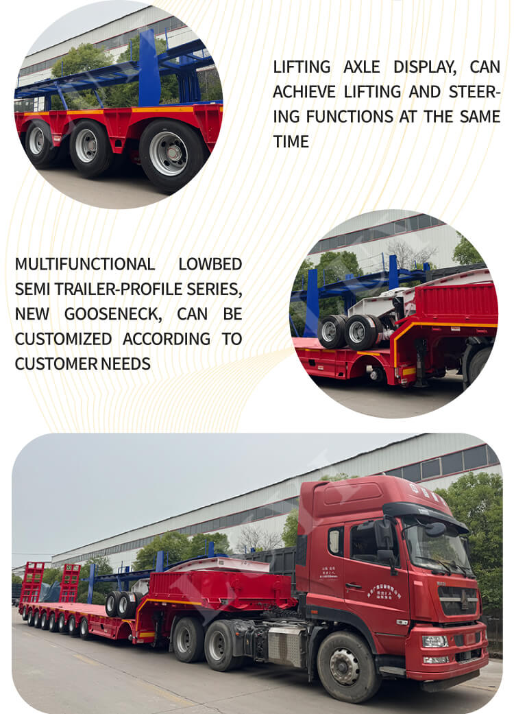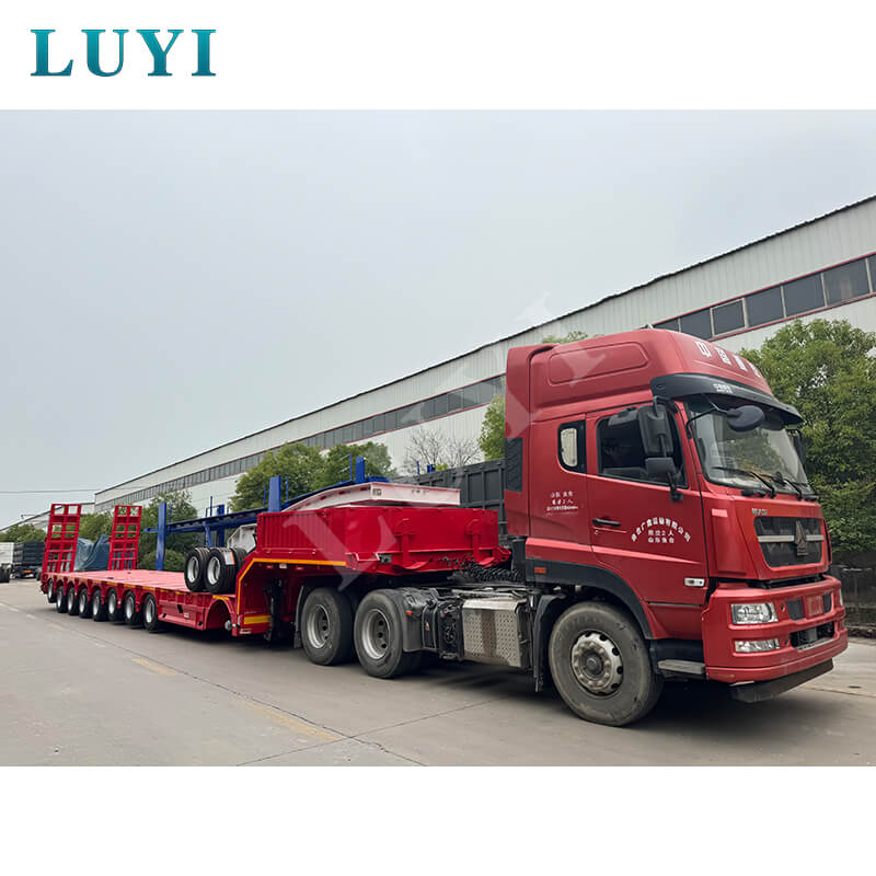 LUYI 8-Axle 120T Air Suspension Low-Bed Semi-Trailer, originating from Shandong, China, is a high-performance semi-trailer specially designed for heavy-duty equipment transportation. Made of high-quality steel, it measures 22000×3000×1600mm with a maximum payload of 100T, easily meeting the transportation needs of various heavy equipment.
