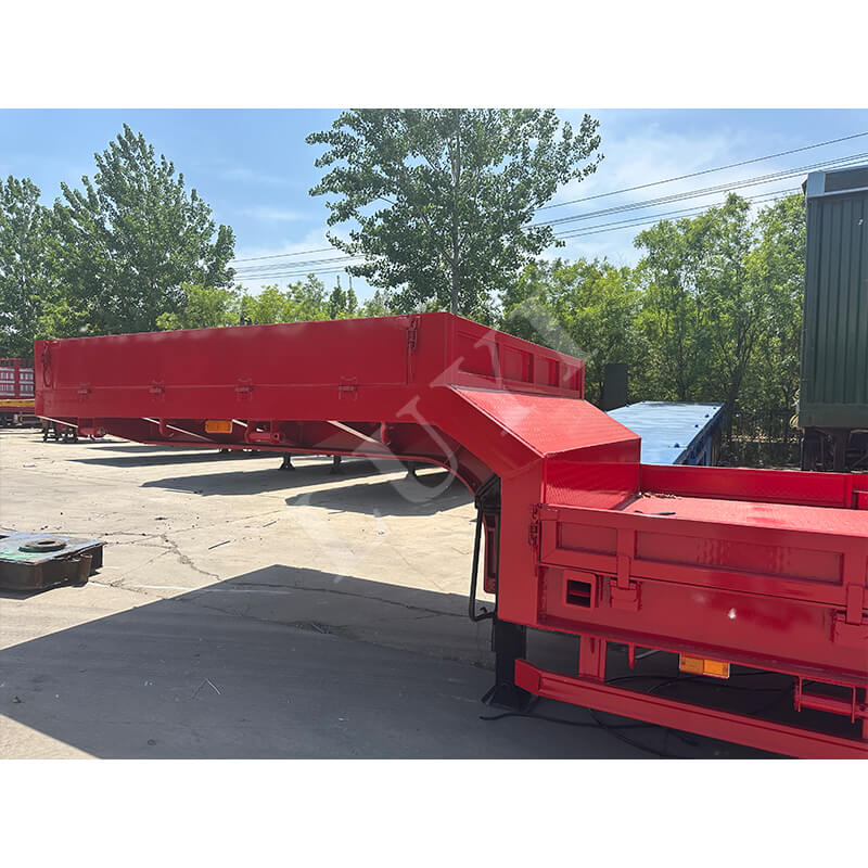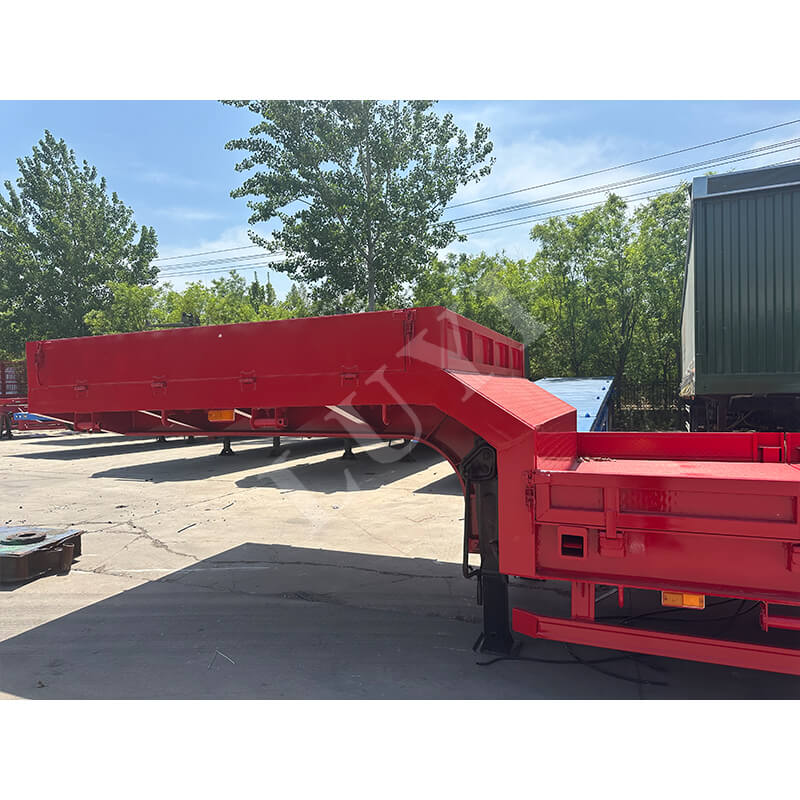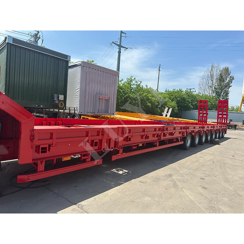 Constructed with high-quality carbon steel or aluminum, it balances durability and lightweight requirements, boasting a maximum payload of 100 tons to easily handle various heavy equipment transportation scenarios. Equipped with an 8-axle design, it offers optional Fuwa or BPW brand axles, paired with either mechanical suspension or air suspension systems, ensuring driving stability and cargo safety. Three tire specifications are available: 12R22.5, 12.00R20, and 11R22.5, suitable for different road conditions.