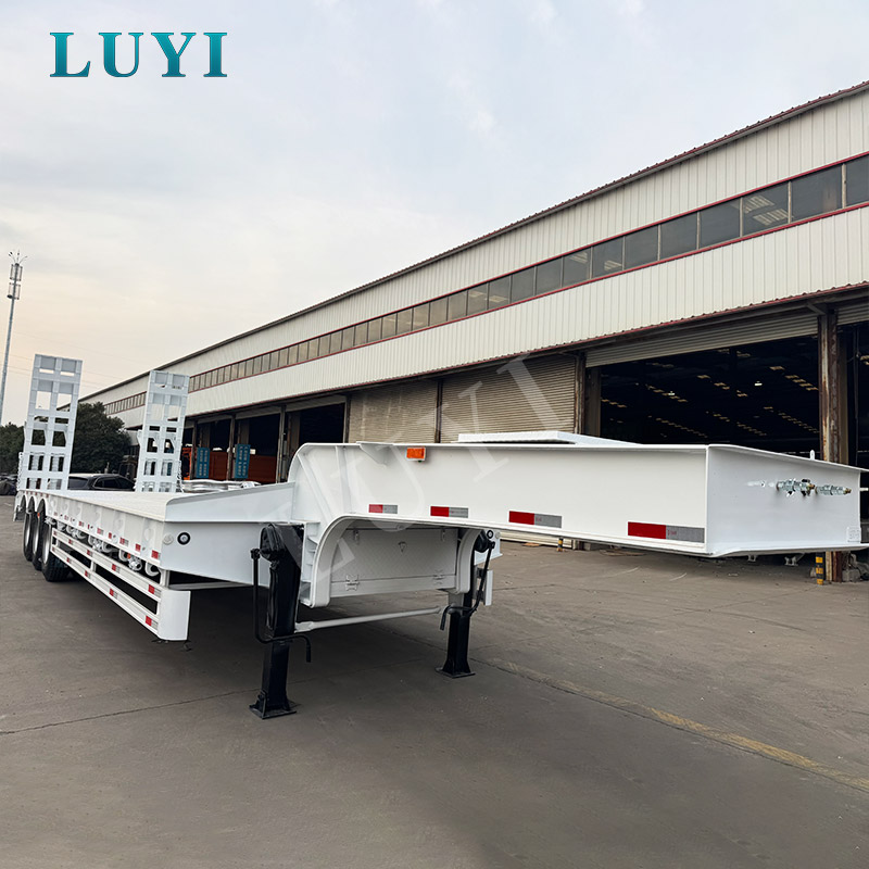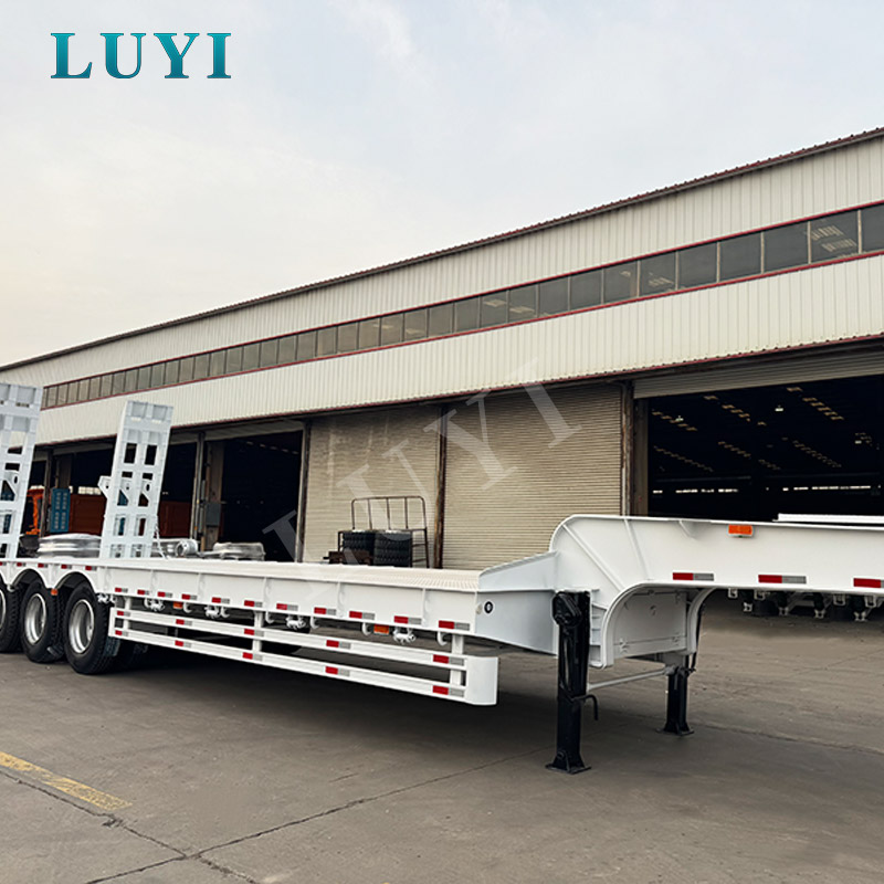 The LUYI 3-axle 60-ton lowbed semi-trailer, originating from Shandong, China, is a reliable choice for heavy-duty equipment transportation! Constructed with high-strength carbon steel, the trailer is robust, durable, and boasts excellent load-bearing capacity, with a maximum payload of 60 tons. It is perfectly suited for long-distance transportation of large cargo such as engineering machinery and heavy equipment.